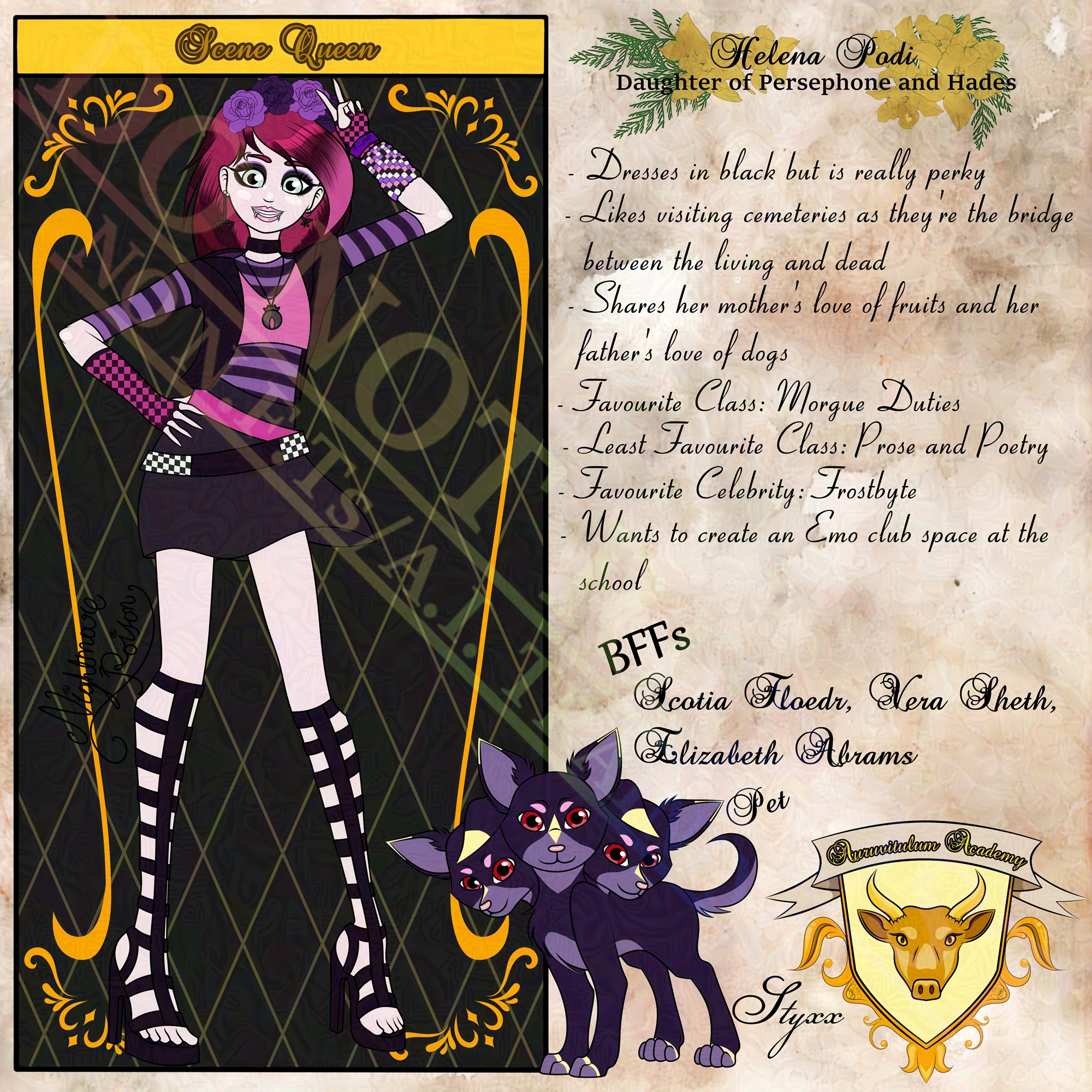 (Image is protected by Glaze.)Another collab with [lolohe12](https://www.tumblr.com/lolohe12), this time the daughter of Persephone and Hades! Like with Elizabeth, Lolo made the outfit/coord and the rest was for me to figure out, but I loved the ideas Lolo brought to the table. Trust me, there's plenty more OCs I need to work on, but burn out was a bitch (hence why such a long time frame between this and Elizabeth). Either way, I hope you enjoy it! (Also, Styxx is offspring of Cerberus (but based on Chihuahuas) and inspired by sparkle dogs.) (Image is protected by Glaze.)0 Comments 0 Shares 24 Views -