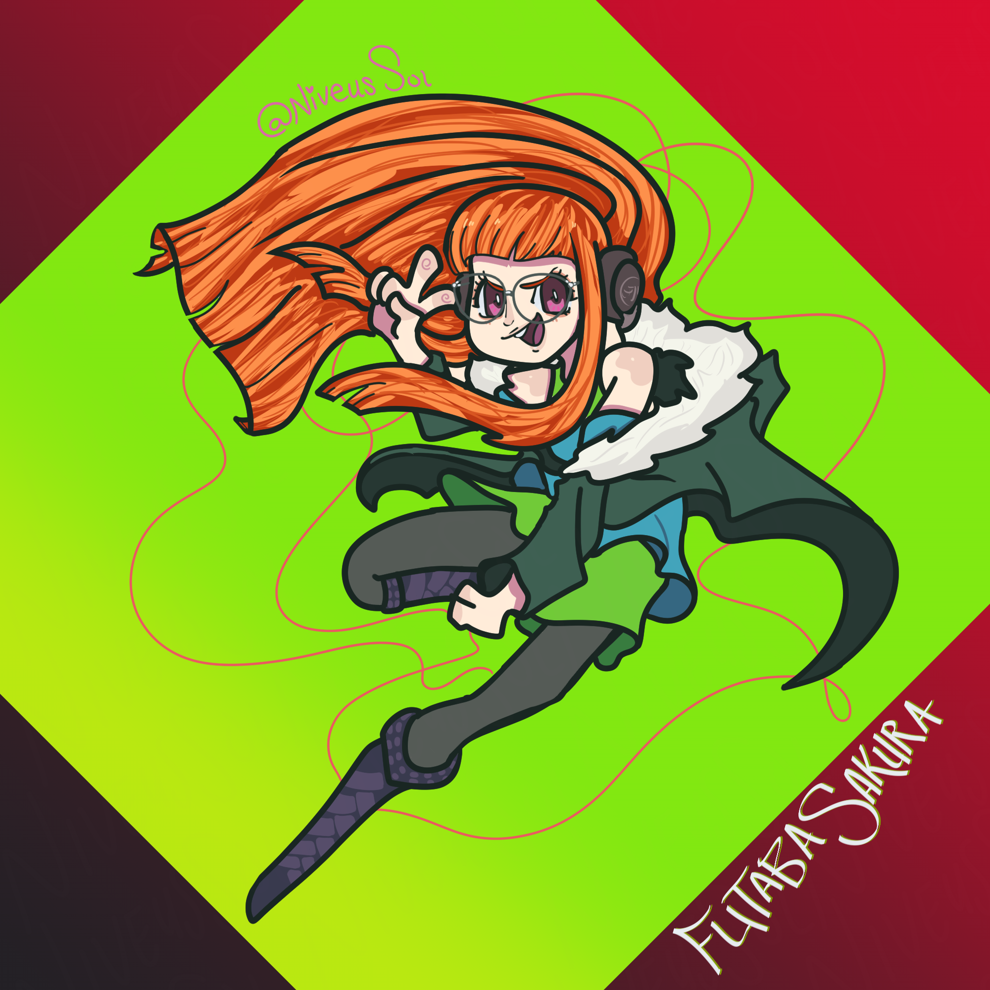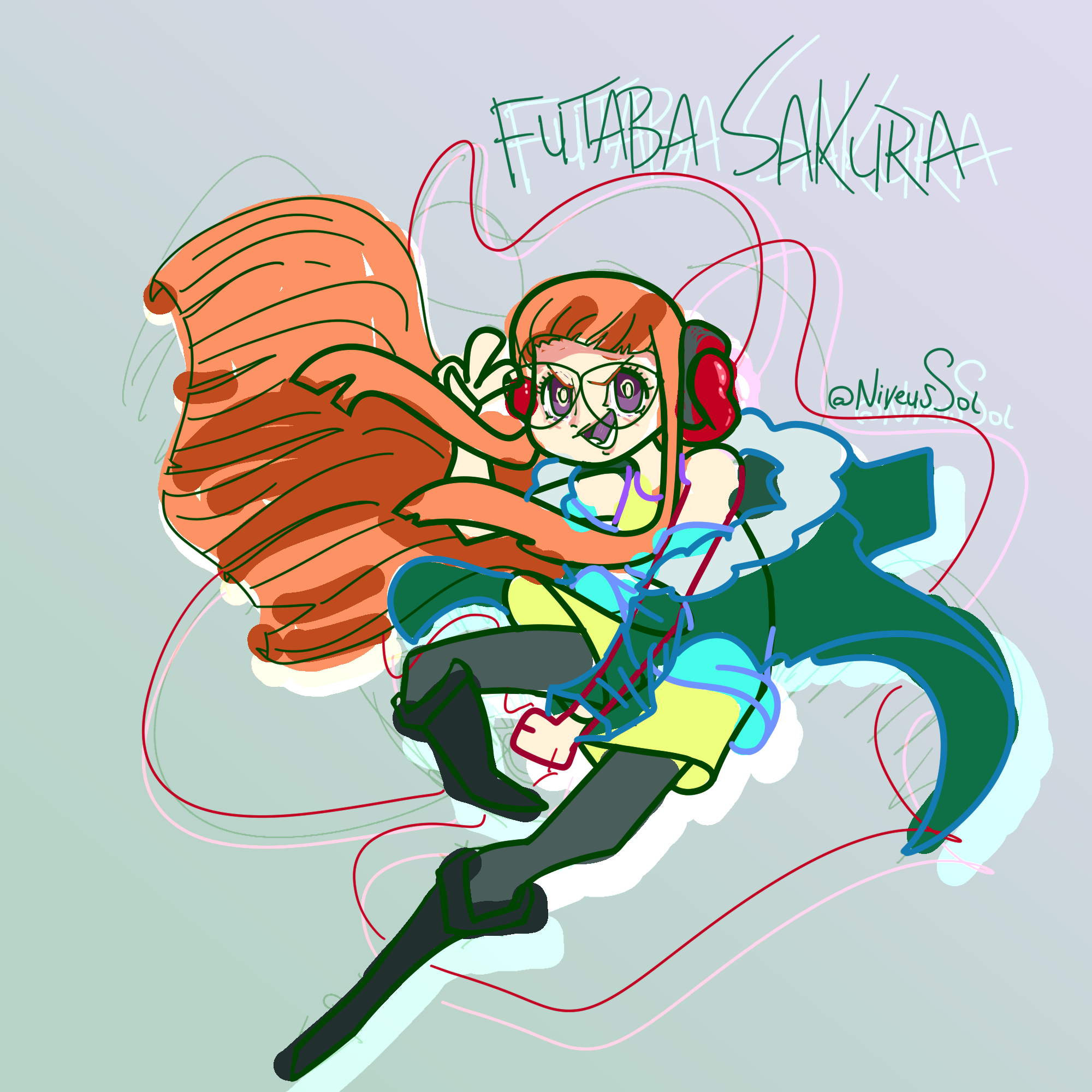 As for the red dress "Arcanum Cantor" drawing, she's a singer in an indie band (this would be in her 20s after the events of the games). They do covers of.. well the Persona 5 songs, and stuff in the same range of genres.