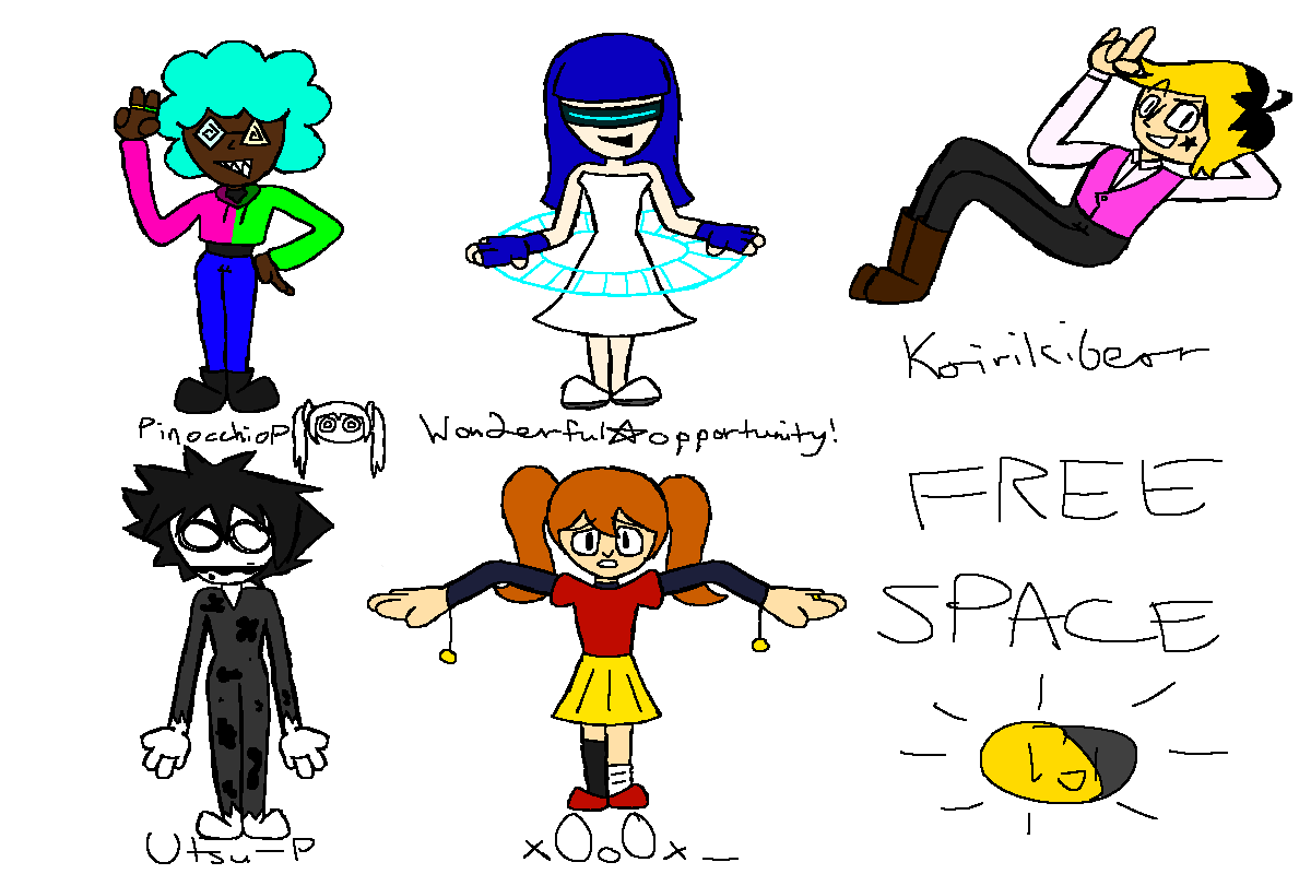 5. open!fucked around and made some adopts the other day based off of vocaloid producers !! art >>>>> characters also it doesnt show since its a white background and i originally had the image transparent but forgot to turn it back on, but 5 has white puppet strings !! 1. open! ~~2. pending~~ 3. open! ~~4. pending~~ 5. open!0 Comments 0 Shares 5 ViewsPlease log in to like, share and comment! -