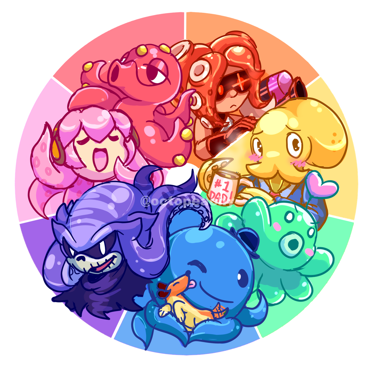 i did the color wheel challenge a while ago, but decided to do all octopus characters since that's my favorite animal!