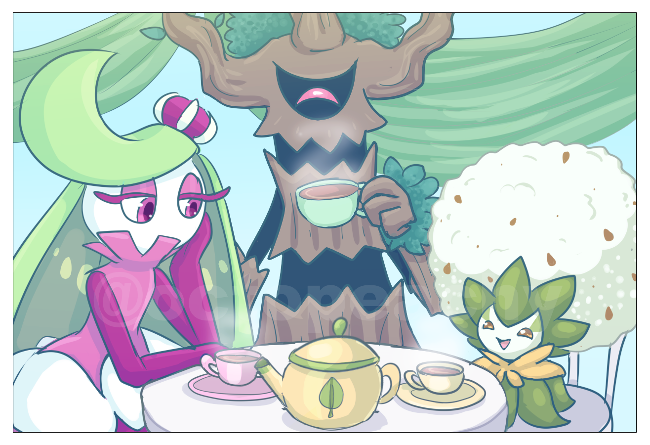 i drew this when trevenant was announced for pokemon unite... i thought it would be cute if the grass-type queens had tea to welcome the new arrival! i don't actually play unite but i'm a fan of how many unexpected pokemon make it in, and the holowear is fun to seei drew this when trevenant was announced for pokemon unite... i thought it would be cute if the grass-type queens had tea to welcome the new arrival! i don't actually play unite but i'm a fan of how many unexpected pokemon make it in, and the holowear is fun to see0 Comments 0 Shares 3 Views