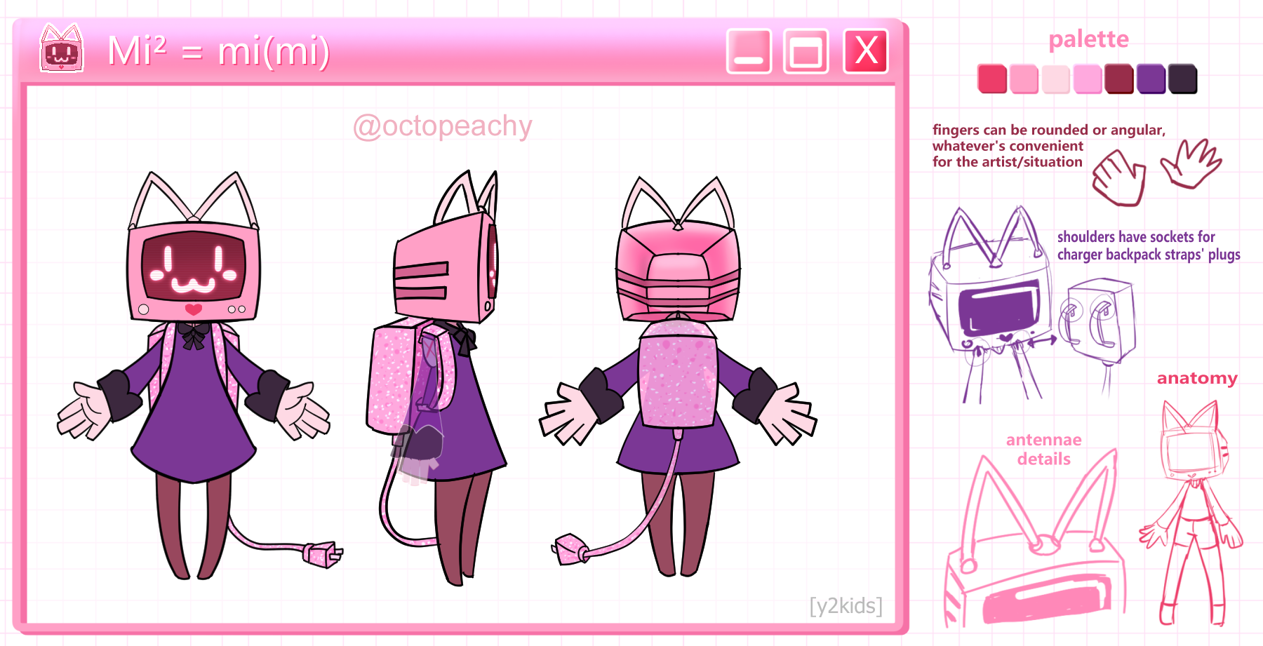 ref of mi² (pronounced "mimi")! she's the protagonist of her own in-universe edutainment game, mew school. she loves guiding and helping others, and often rehearses her tutorials when she's alone.