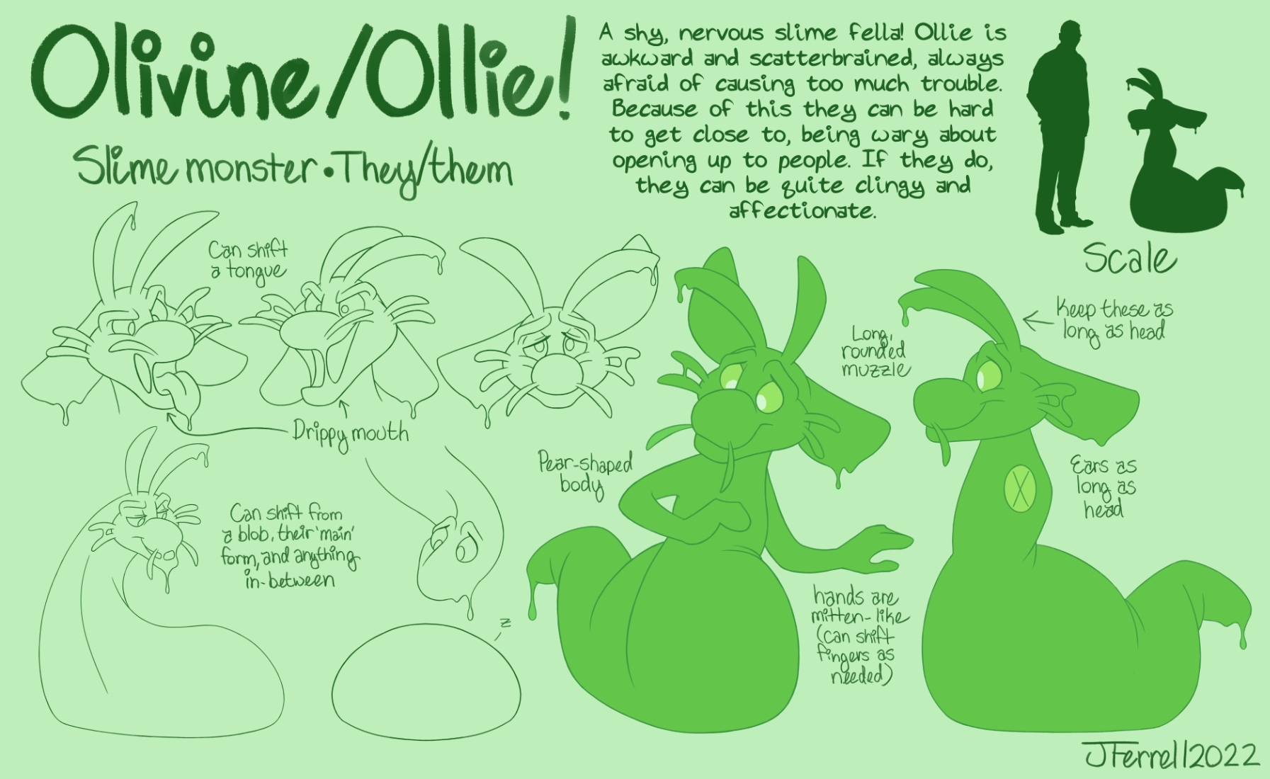 Just a reference sheet for Ollie, my newer 'sona-type character and weird slime creatura extroadinaire. (You know, my account namesake!) I love them and draw far too much of them because I am in that OC honeymood phase where I obsess over them.Just a reference sheet for Ollie, my newer 'sona-type character and weird slime creatura extroadinaire. (You know, my account namesake!) I love them and draw far too much of them because I am in that OC honeymood phase where I obsess over them.0 Comments 0 Shares 38 Views