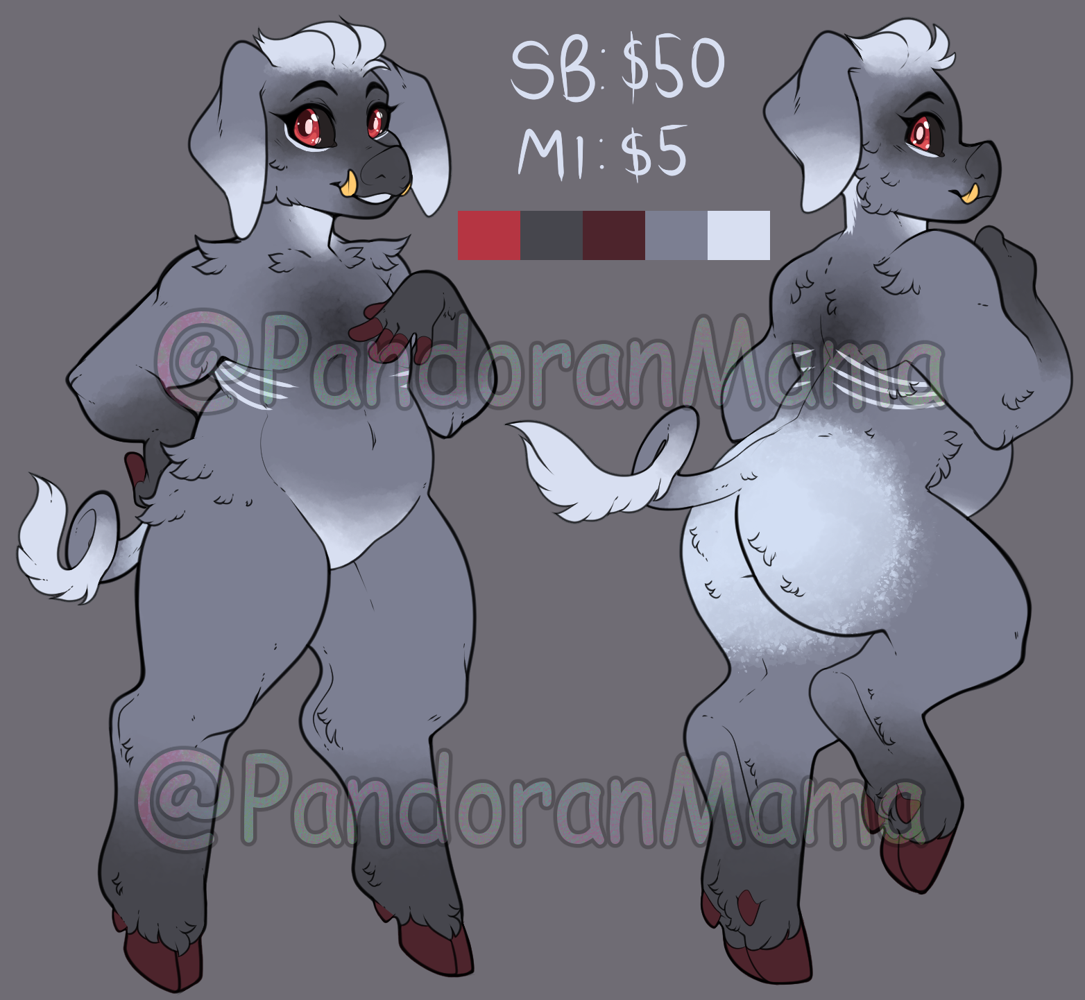 + [Ko-Fi](http://ko-fi.com/pandoranmama)**Winner:** https://www.furaffinity.net/user/demonichunny = = = **Rules** 1. Reply to previous bidder. 2. Winner will get unwatermarked version for personal use after paying. Please use watermarked version, and give credit, if you repost. 3. You may make whatever changes to the character you wish after purchase. All I ask is that they are still recognizable as my design. 4. Please have money ready if you bid. 5. Do not hide your comment. Be sure you are willing to pay before bidding. 6. If payment is not received within 24hrs, unless discussed, design will go to previous bidder. 7. Accounts must have an avatar/activity on them to be valid. 8. You may resell the design, but only for what you paid for it, unless there is additional commissioned art. 9. You can gift/trade the design. - - - Design by Me [Base](https://www.furaffinity.net/view/29942144/) by [planetsrings](https://www.furaffinity.net/user/planetsrings/) - - - If you want a design like this, [my Commissions are Open](https://pandoranmama.carrd.co/#commissions) If you like what I do, but cannot commission me, here are some other places you can support me: + [Ko-Fi](http://ko-fi.com/pandoranmama)0 Comments 0 Shares 31 Views -