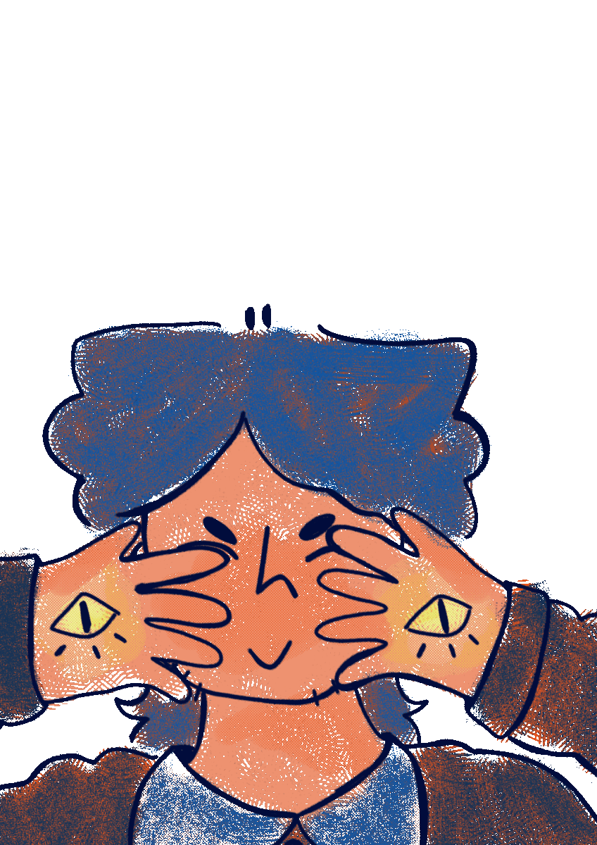 [Illustration] gif of my oc yuri opening and closing his hands in front of his face while blinking. He has eyes on his hands that reveal themselves with the movement. He wears a long-sleeved shirt. The tones are blue and orange.0 Comments 0 Shares 24 Views -