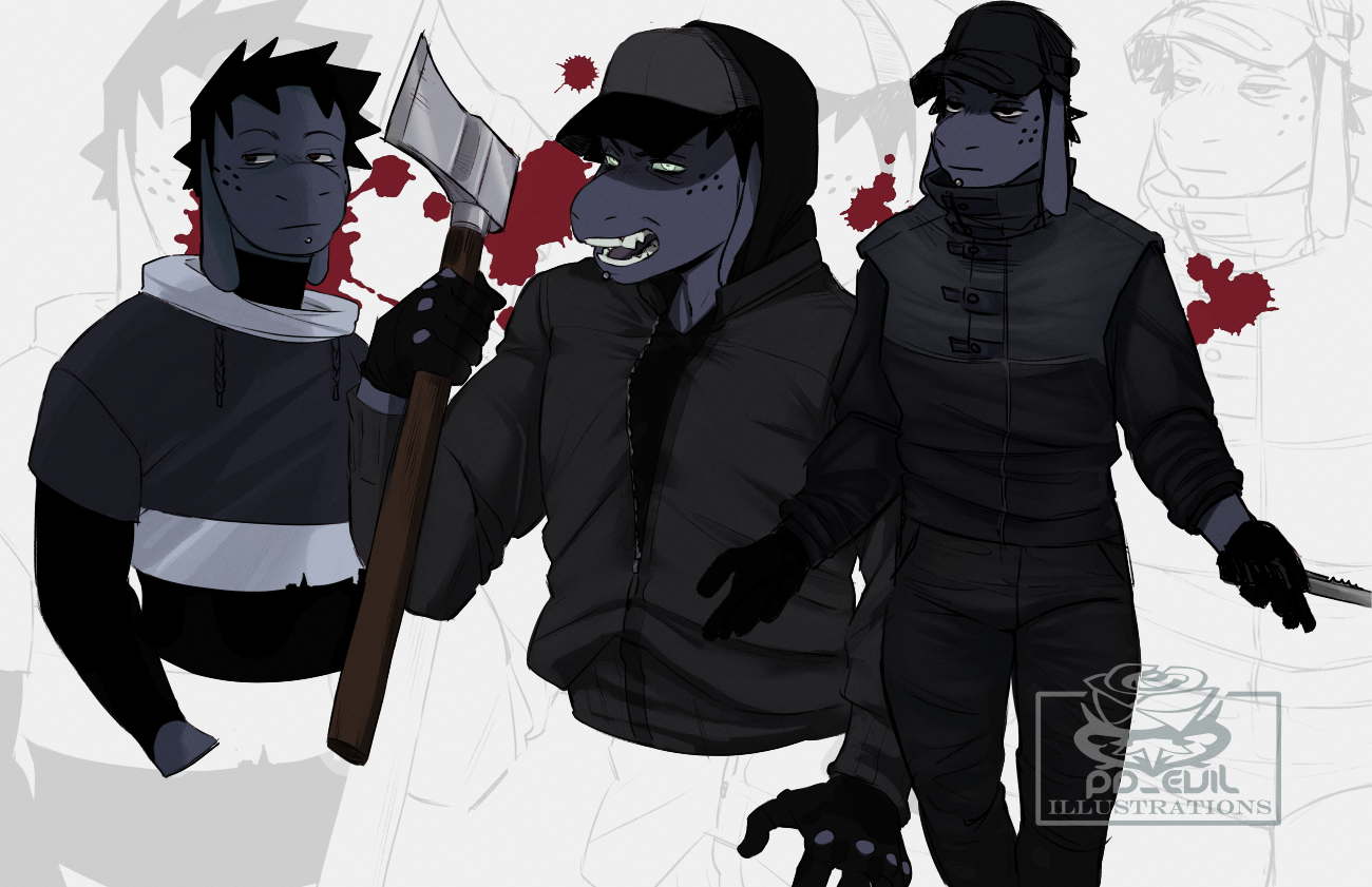 2 of my fave blorbos. Center OC belongs to [Lox](https://twitter.com/LatelyLoxiv) OC on the left is mine.