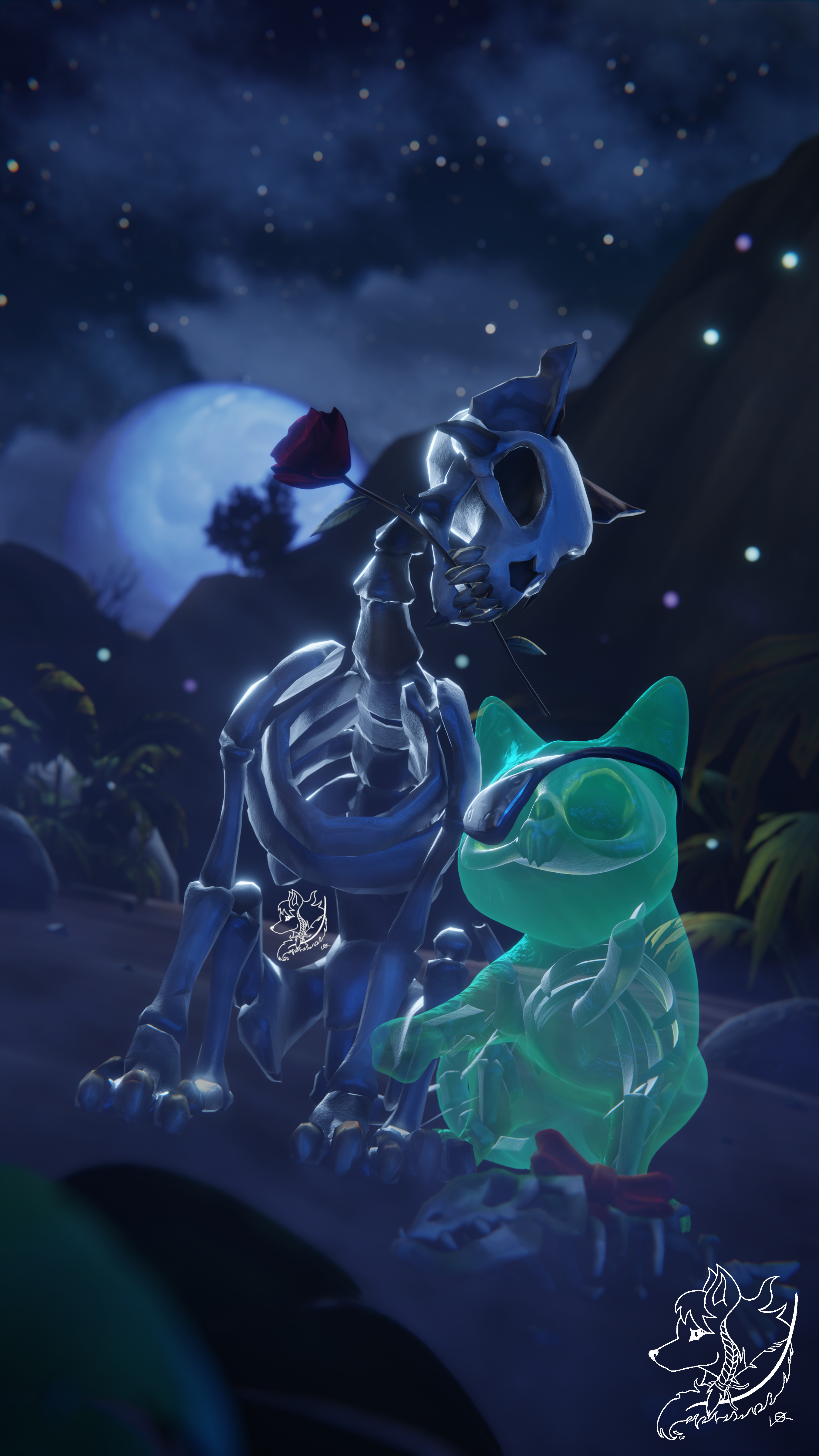 A special shout-out to Cazad0ra for their recent help. I'm so appreciative to be a part of a community filled with caring artists who are willing to help.**This piece was originally completed and published to DeviantArt on Feb 14, 2022.** During February and Valentine's Day of last year, several romantic pieces of art featuring Pete and Phe were made by me. This time around, I decided to give them some much-needed privacy during the month of love. Instead, we get to see a different unique couple as they share a tender moment. It looks like Jiggles has found his soulmate, awwww. Meet Kel'Thuzad, Kelly for short, my in-game Sea of Thieves skelly kitty. Don't allow her name to deceive you though, her "purr-sonality" is nothing like her namesake. This adorable piece was created to give me a break from working with some new somewhat frustrating assets that were recently obtained. I say frustrating, but that is expressed in a good way, as many new things have been undoubtedly learned as a result. A special shout-out to Cazad0ra for their recent help. I'm so appreciative to be a part of a community filled with caring artists who are willing to help.0 Comments 0 Shares 20 Views -