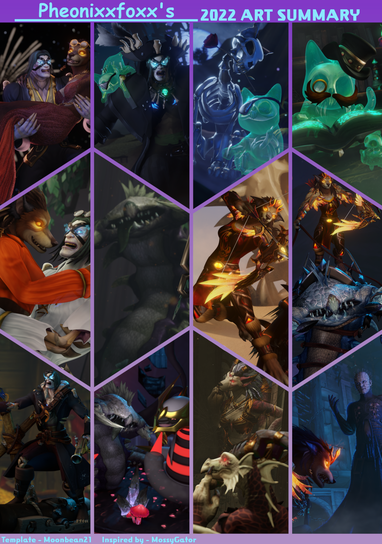 Not really sure how much personal creative growth I accomplished in 2022 or if it indeed shows? Many new techniques were learned and there were formidable challenges to be had, but they were effectively tackled.**This review was originally completed and published to DeviantArt on Jan 11, 2023** As the familiar saying goes, "**_Better late than never._**" It seems the past 3 years have been rather rough for a variety of emotional reasons. Hopefully 2023 is not only better for me, but all of you too. Despite life undoubtedly being a massive turd sammich, 12 art pieces were produced by me in 2022. Instead of going with the template, I've used for the past couple years; something new was chosen instead. Not every month had a new piece of art created by me. If my current WIP was completed in December of 2022, that would have meant a total of 13 creative pieces. Maybe it is a good thing that didn't happen? Anyway, back on track. While creating at least one unique piece of artwork a month is a good goal to shot for, my art is traditionally meant to be therapy. Stressing to sufficiently meet a goal helps to defeat that specific purpose. Therefore, it was wisely decided that all my art pieces for 2022 are going to be included in the yearly summary. So, a template with no dates was found thanks to Moonbean21. Admittedly, I did adjust the coloring; as purple is my color of choice. Not really sure how much personal creative growth I accomplished in 2022 or if it indeed shows? Many new techniques were learned and there were formidable challenges to be had, but they were effectively tackled.0 Comments 0 Shares 20 Views