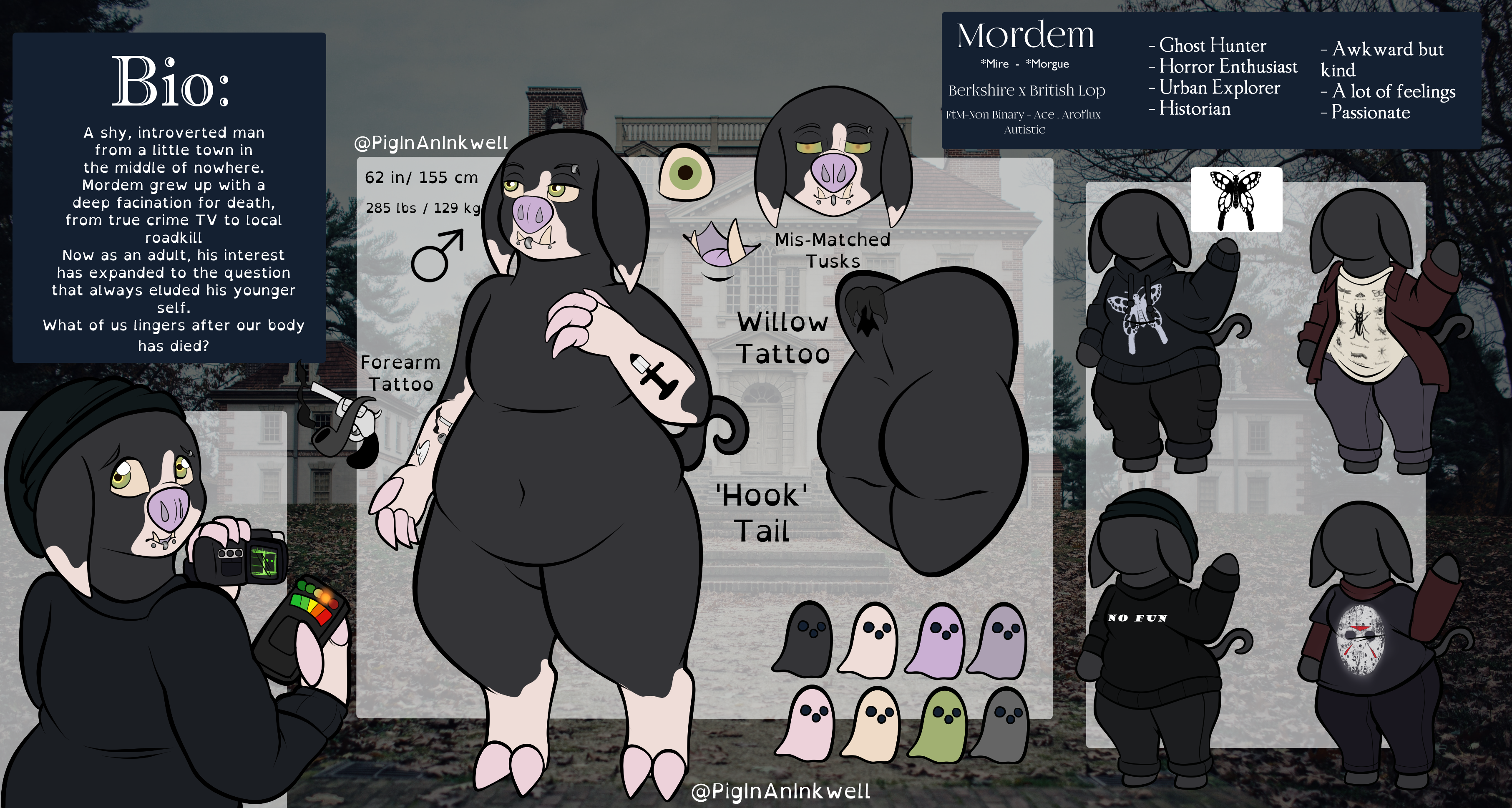 Lineart was done by my friend on DiscordRef of my sona Mordem. A bit of a truesona, he has my body-type, and had the tattoos/peircings that I want to eventually get. He's a huge compilation of things that are super interpersonal to me, mainly my deep connection to the paranormal. I grew up watching ghost shows on TV with my mom and that had stuck with me for a long time. So now I can live that vicariously through this guy. Lineart was done by my friend on Discord0 Comments 0 Shares 2 Views -