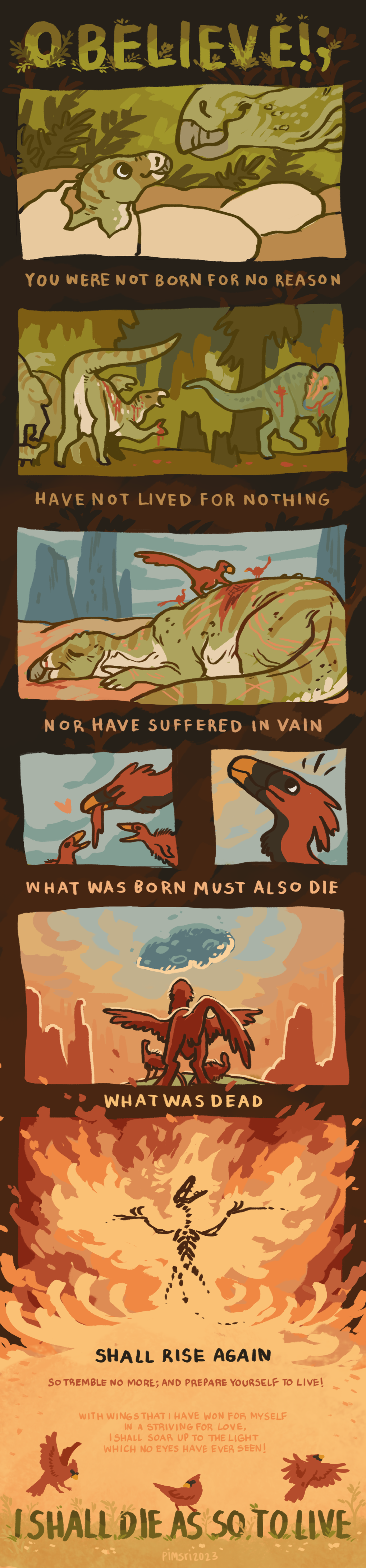 I think the "I shall die as so to live (Eternally)" really gets me. It's not Mahler's intention, but I decided this symphony is about dinosaurs now.I have been playing a lot of Path of Titans! Dinosaurs was my favorite thing as childhood xD Inspired by Mahler's Symphony No.2 "Resurrection", the text is from the finale! I think the "I shall die as so to live (Eternally)" really gets me. It's not Mahler's intention, but I decided this symphony is about dinosaurs now.0 Comments 0 Shares 25 Views -