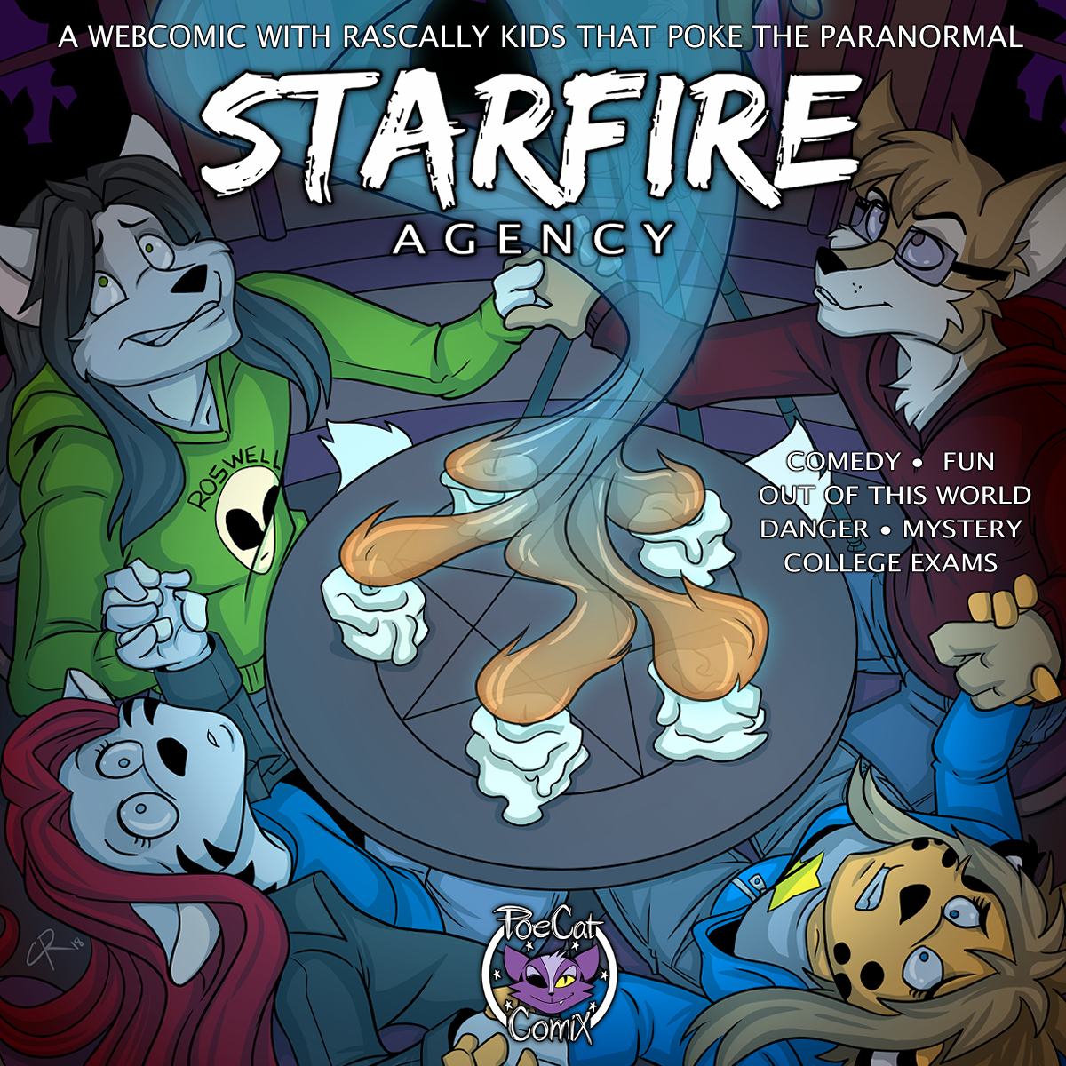 Meet the Starfire Agency. Rascally kids that poke the paranormal, run with vampires and tease the aliens. An anthropomorphic webcomic that has lots of different characters, personalities and humor for everyone to love.