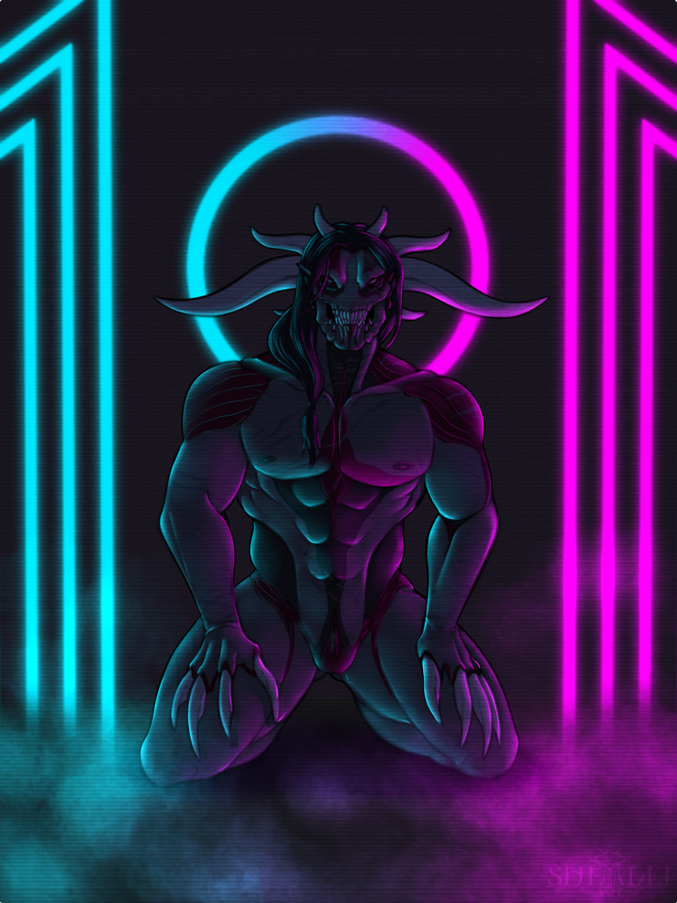 I made this for daggerjaw @dA and this is their character - Anvil. I'm really happy that I had no bigger problems with choosing background and all the fun stuff with neons and light (aesthetic AF)