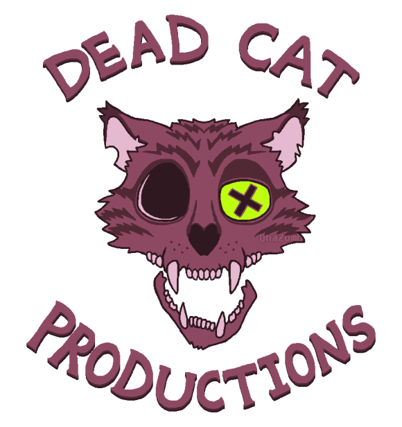 back in highschool i used to watermark my art with this simple cat skull logo with the name "dead cat productions" on it.