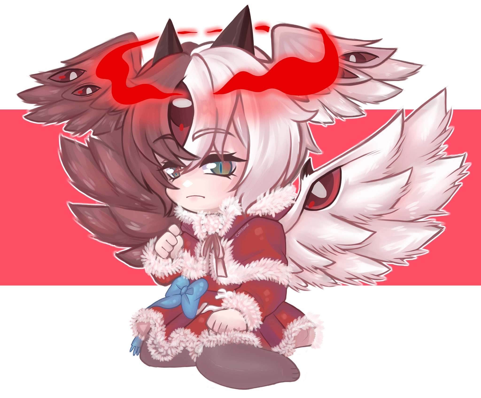 A chibi of my oc Seraphiel in a red dress…