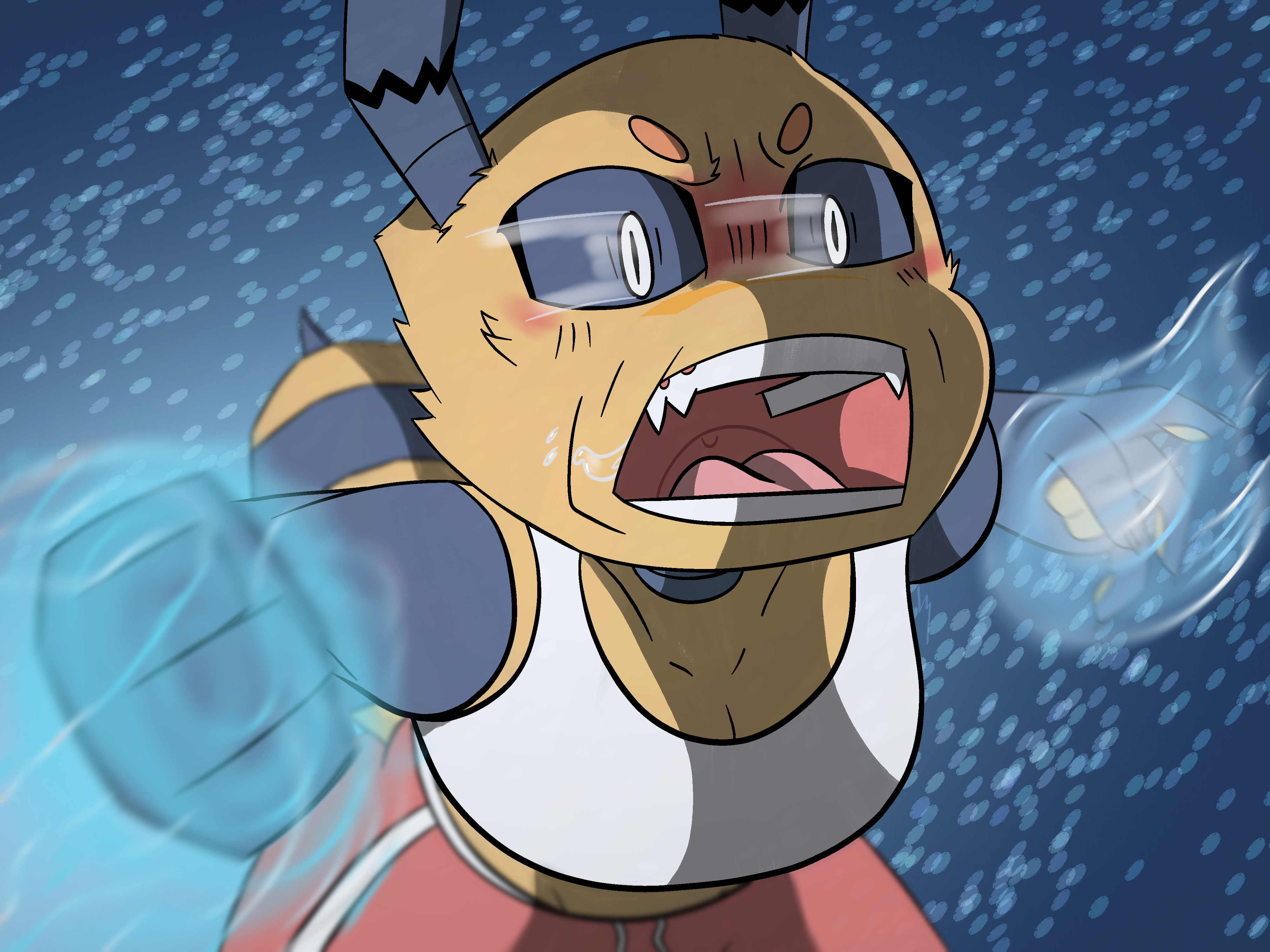 I decided to practice perspective and based this image of Derrik under a manga-style fisheye perspective on the memes of those 360 headband cameras, I'm pretty fond of the result.