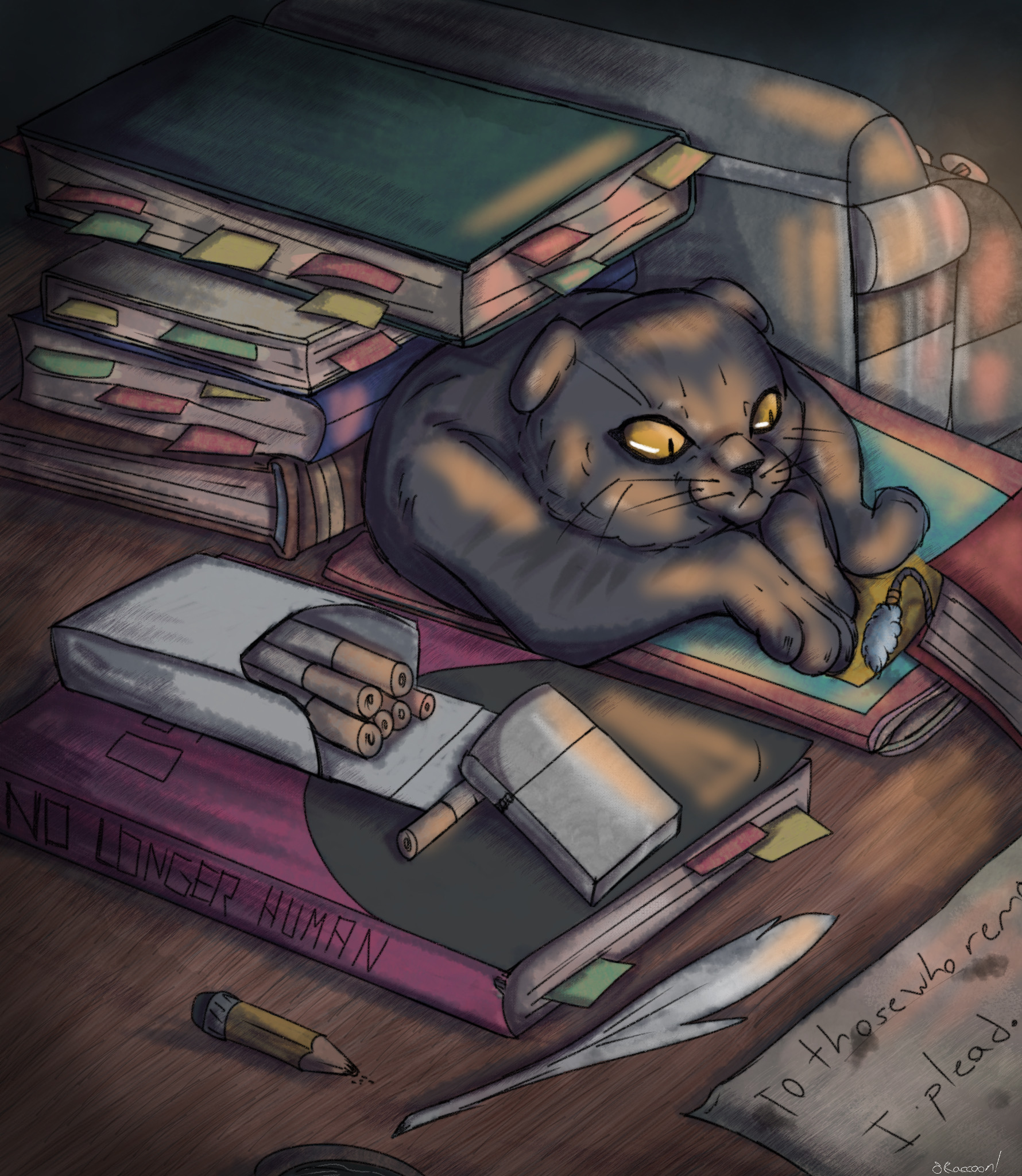 A cat sits alone on his owner’s desk, playing with a feathery bookmark. The desk is littered with books that have been annotated to death.A cat sits alone on his owner’s desk, playing with a feathery bookmark. The desk is littered with books that have been annotated to death.0 Comments 0 Shares 1 Views