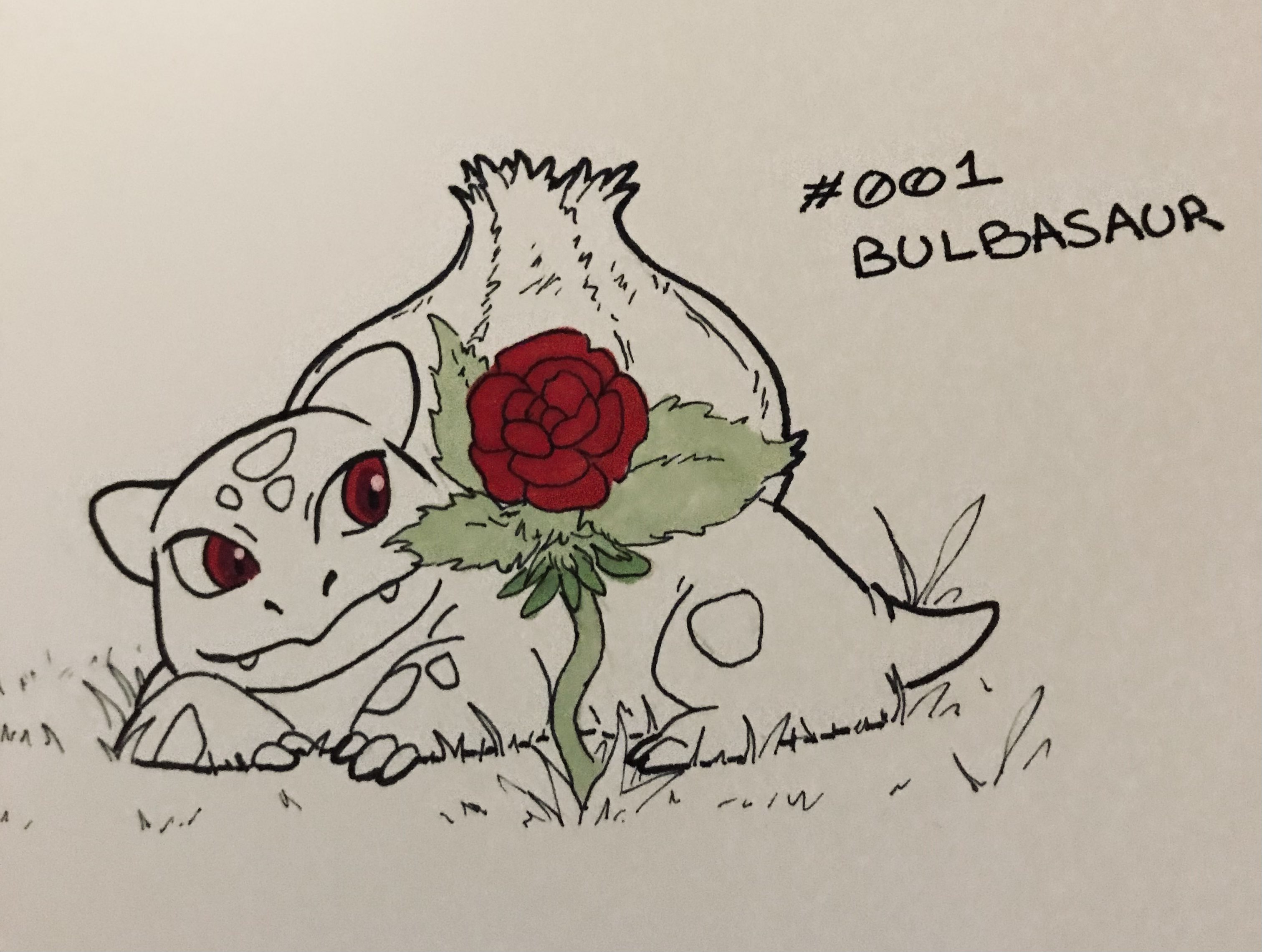 I tend to stylize the Bulbasaur line as Rhinos, which I know doesn't fall exactly in step with how they're usually depicted (I see a lot of frog and dino looks for them, which is rad!) Something about them just strikes me as big, tanky friend energy though, so rhinos they be!