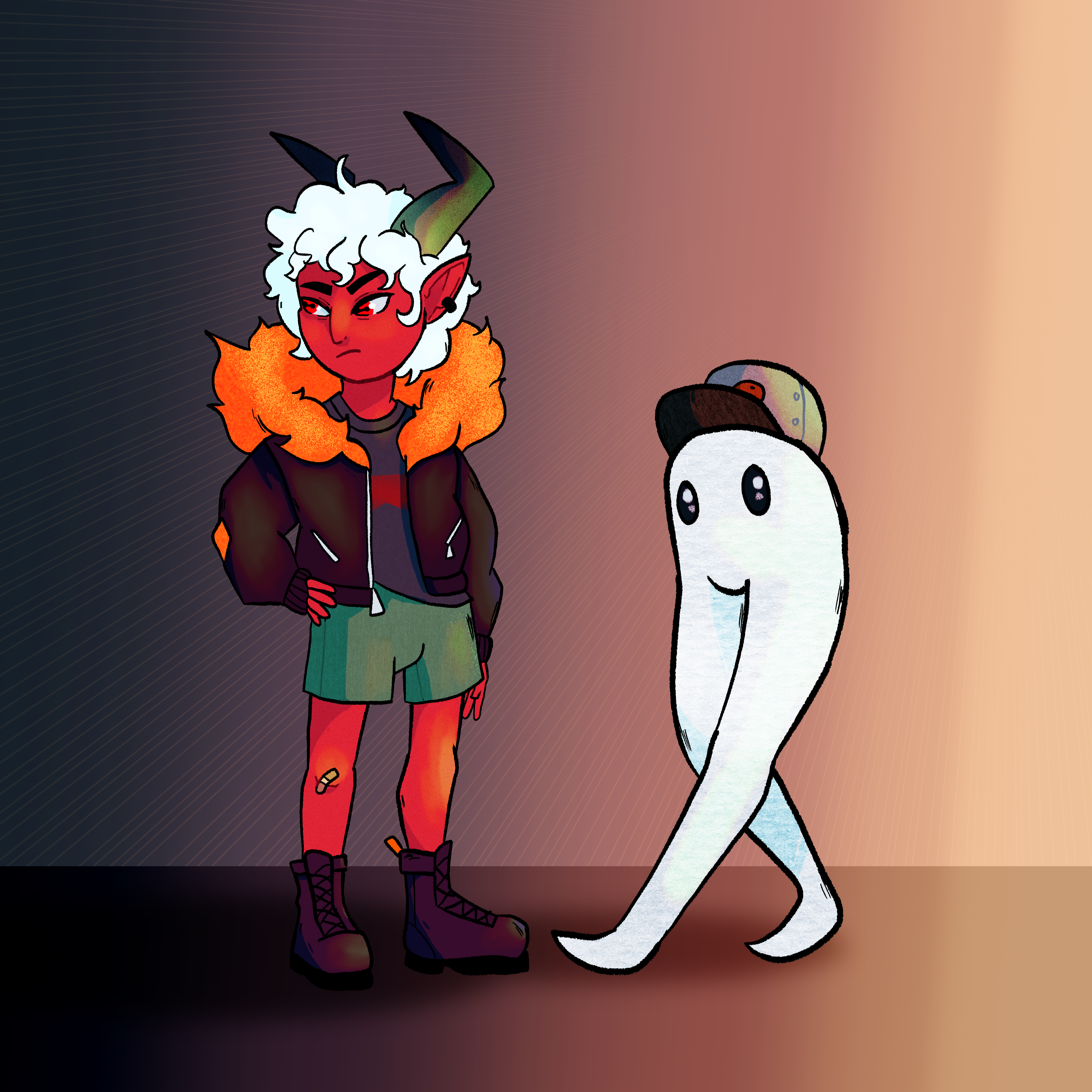 (Art is from October)Demon kid OC, Keeko! He's from the same home as my little vamp girl. While he can do some fire magic, he's much more at home with smoke tricks. His fire, like him, is always cold! (Art is from October)0 Comments 0 Shares 24 Views -
