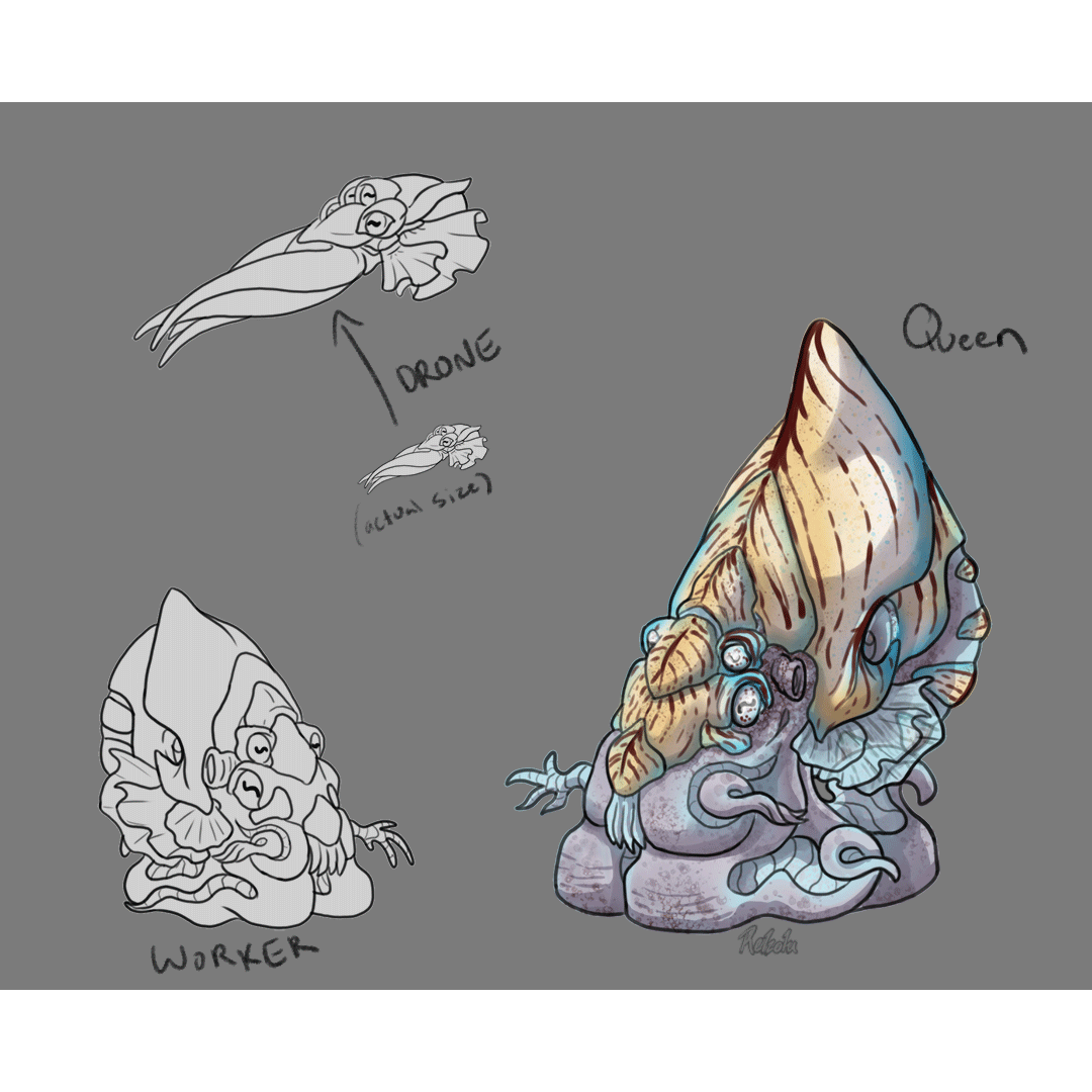 They dwell primarily on land but can also live in the water comfortably. I picture them walking in a similar way that octopuses "walk" along the ground in the ocean. The are pretty big - the worker is quite a bit taller than your standard human.cephalopod-like aliens. I'm calling them hexapods until I can come up with something better. They dwell primarily on land but can also live in the water comfortably. I picture them walking in a similar way that octopuses "walk" along the ground in the ocean. The are pretty big - the worker is quite a bit taller than your standard human.0 Comments 0 Shares 24 Views
