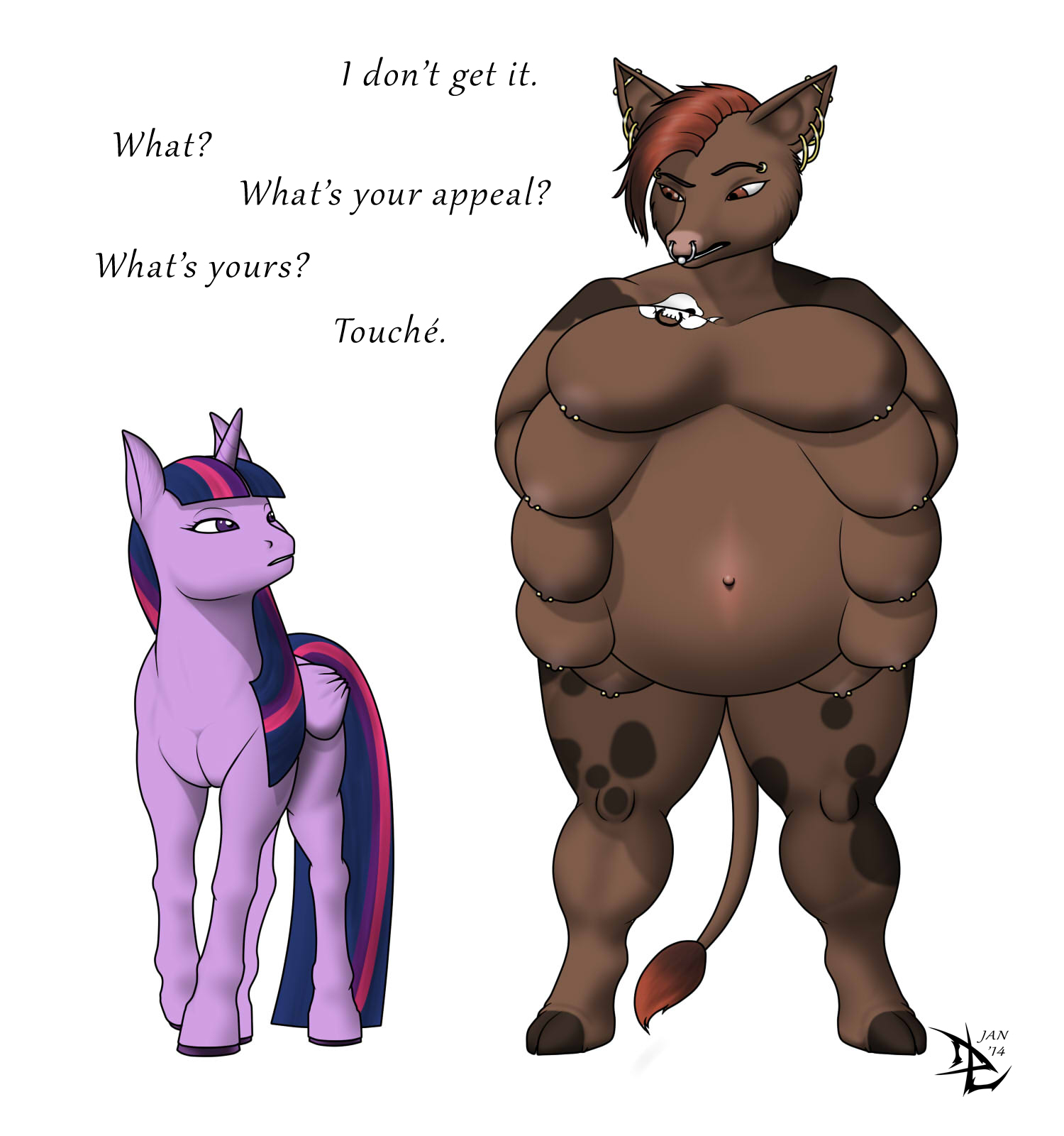 Twilight Sparkle / MLP is a trademark of HasbroA lot of the time, I tend to hide in my little corners of the internet, trying my best to avoid the fabricated drama. Not talking about justified mentions of shady people or their actions, by the way: That can and most certainly **SHOULD** be mentioned to the community at large. In this case, however, I'm referring to the really pointless bickering; the kind brought against people who aren't hurting anyone, but just like something you don't. Real "Your opinion is different than mine about 'X', and I don't like that!" type stuff. So, with that in mind, I present Brenda being dismissive, and being called out for it in turn. Despite not having seen MLP myself, a lot of Bronies were being mocked with such venom at the time I commissoned this, that it seemed like the right IP to include. Art By [Dlesang](https://www.weasyl.com/~dlesang) Brenda Reynolds is my character Twilight Sparkle / MLP is a trademark of Hasbro0 Comments 0 Shares 3 Views -