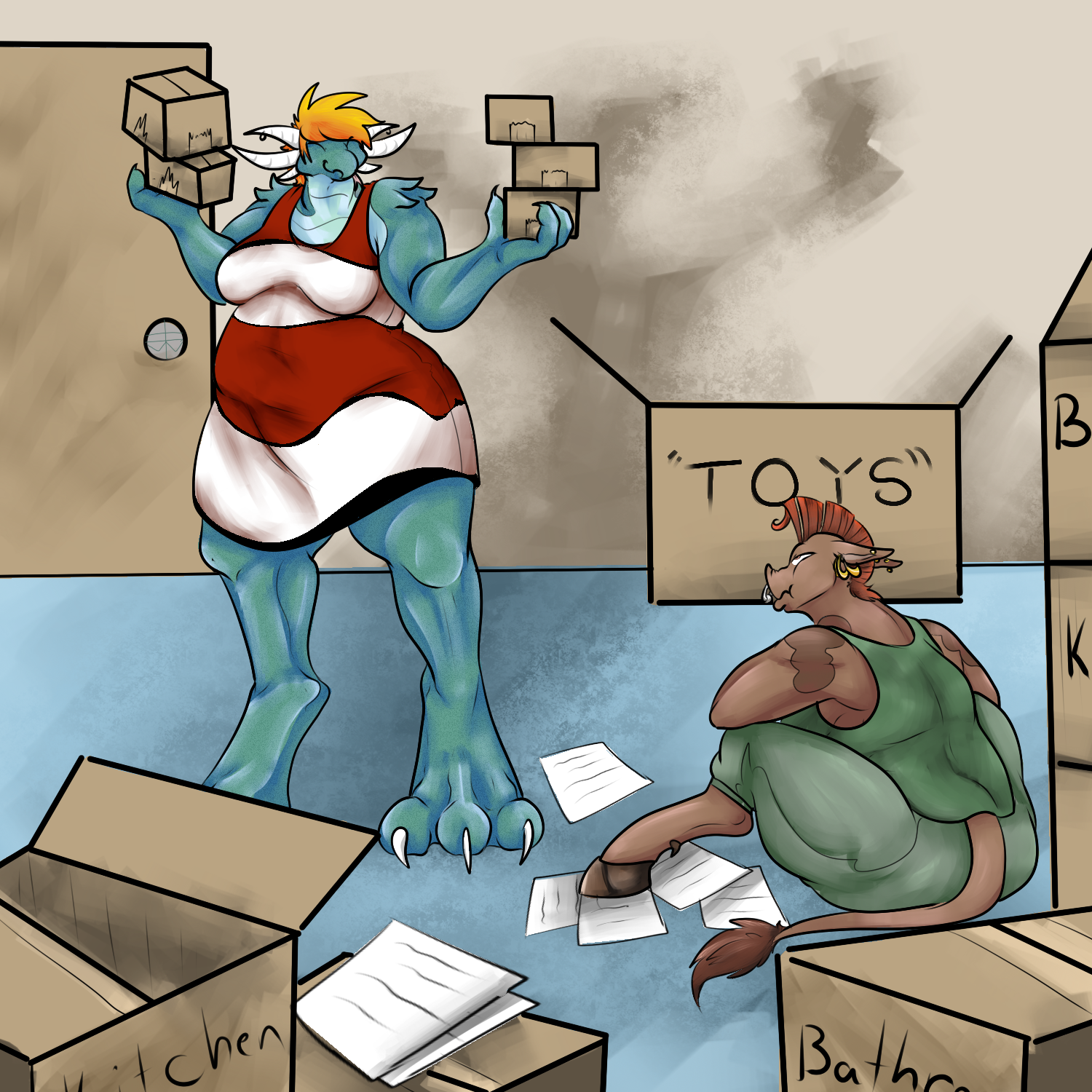 Brenda Reynolds is my characterWe all have that friend that brags about how strong they are, and Jayce here couldn't help but show off a bit while helping Brenda move some stuff. Typical. Art By [CeliaSouris](https://www.weasyl.com/~celiasouris) Jayce is their character Brenda Reynolds is my character0 Comments 0 Shares 2 Views -