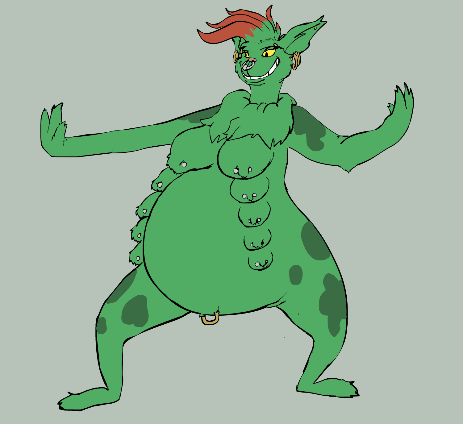 A more risqué version of my fursona, Brenda, depicting her many breasts, piercings, and overall curvy body. You, uh, likely noticed that already, but, hey, that's what these text boxes are for, right?