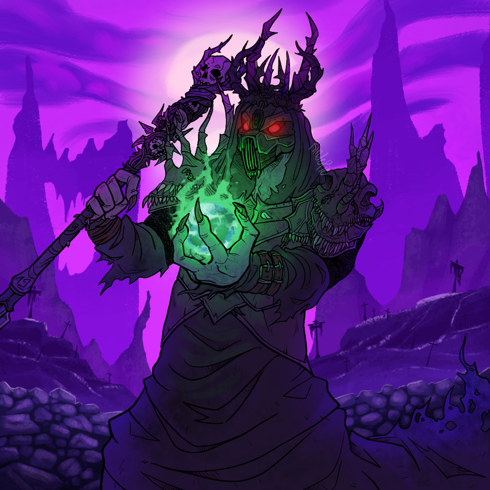 a commission I had gotten from a friend! a nercomancer.. insect.. meaty bug thing! it was interesting to draw, but kinda exhausting because of the detail!
