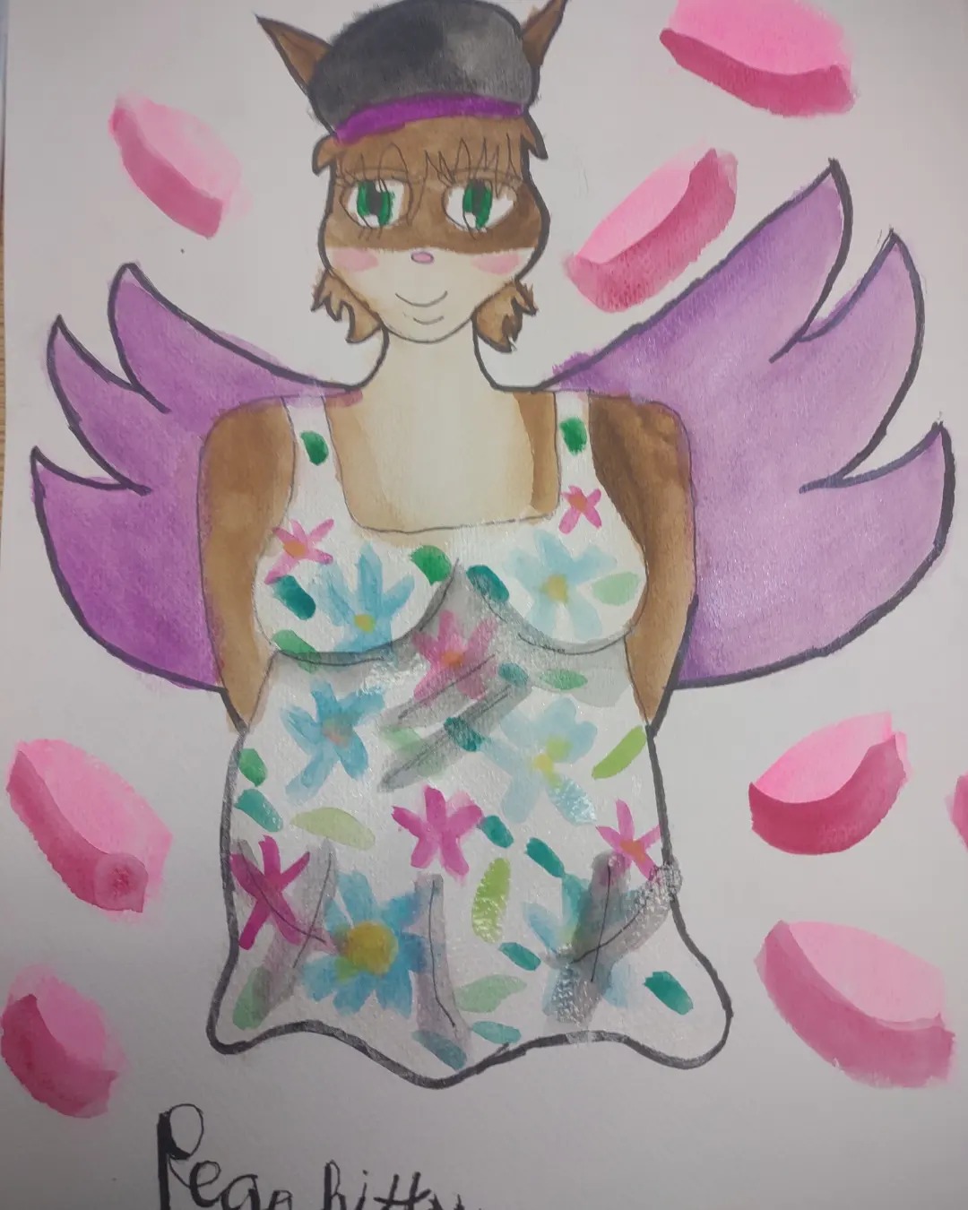 Drawn first, then inked, then WATERCOLOR PAINTED IN LAYERS FOR THIS :DPegaKitty's wearing a cute tanktop today...but I wonder why? Drawn first, then inked, then WATERCOLOR PAINTED IN LAYERS FOR THIS :D0 Comments 0 Shares 23 Views -