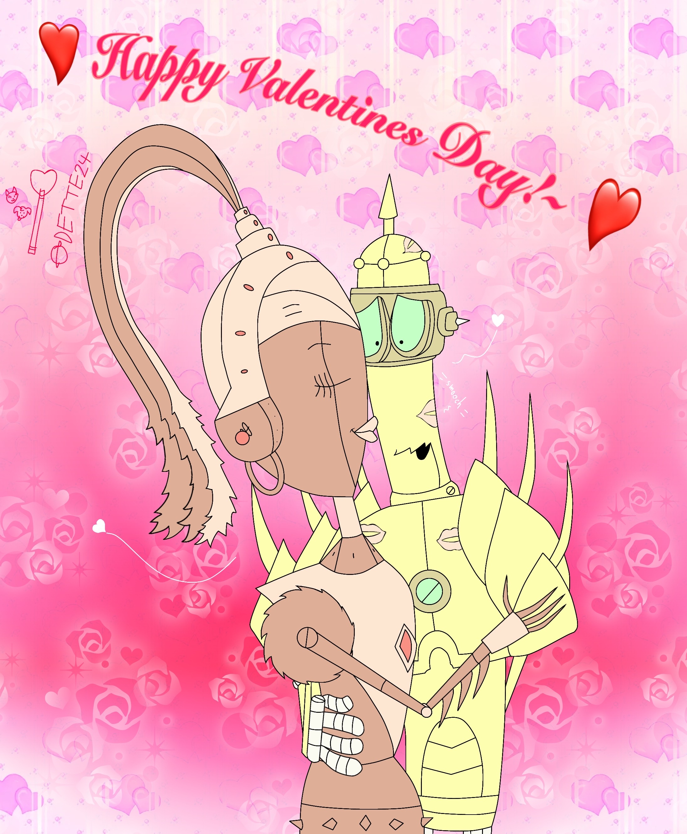 I’ve spent so much time drawing this art of Maimy kissing Thrasher (got this as an idea from dA).