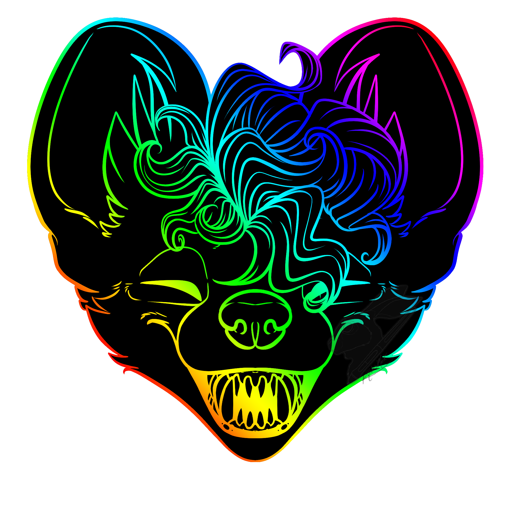 Headshot of my character Chris in a rainbow color pattern in the linework.