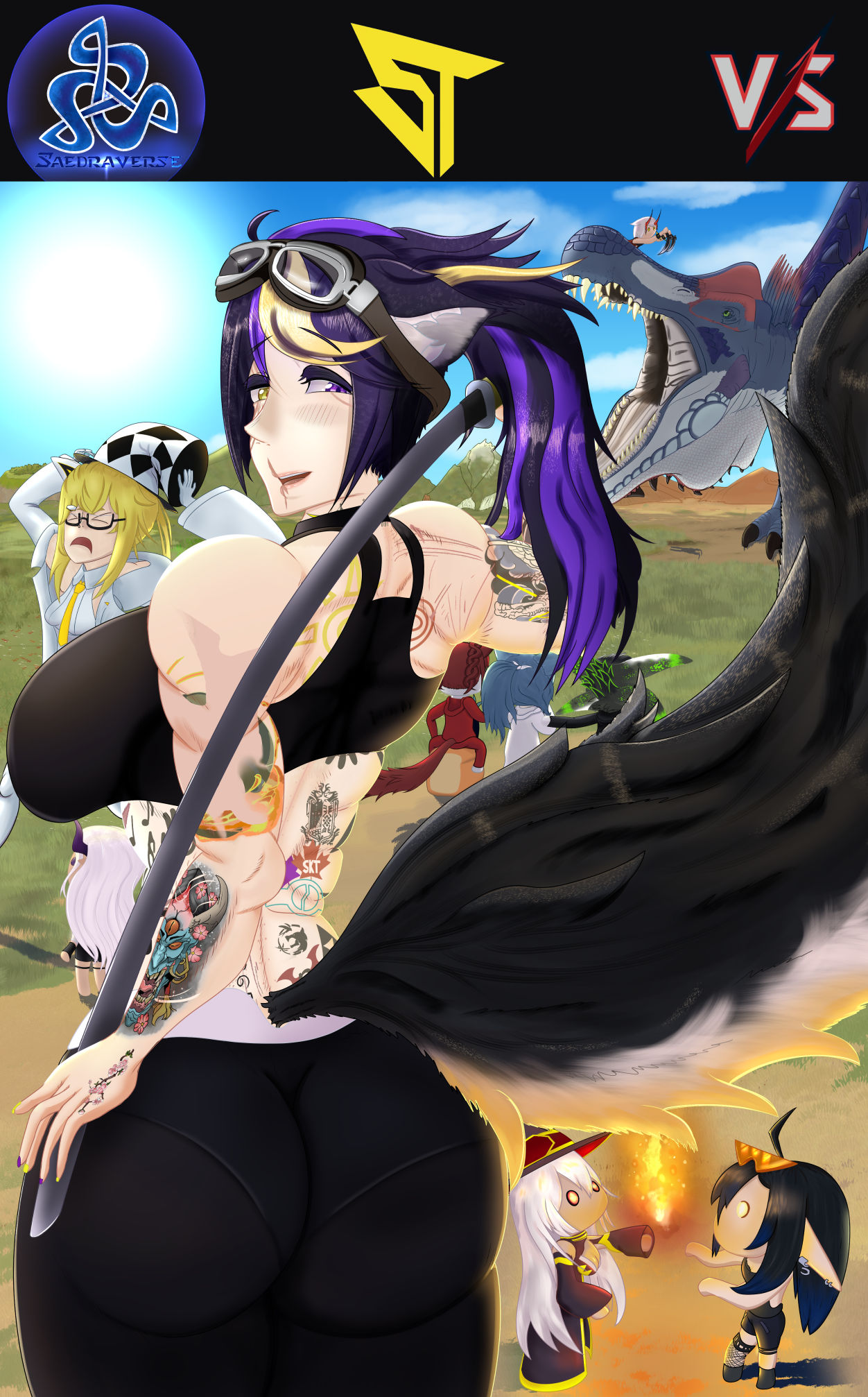 Fanart of a streamer I'm friends with, funny how this started was initially just meant to be her, then got an idea to add another friend, known as Meme, that's the beloved community "bully" toy, and cuddlebutt, getting chased by a dino, cause need to do paleoart somehow (and ended up being the one I didn't get done in november.) Then a mutual friend suggested a plushie army. So added her stream community VStray & some of her mods.