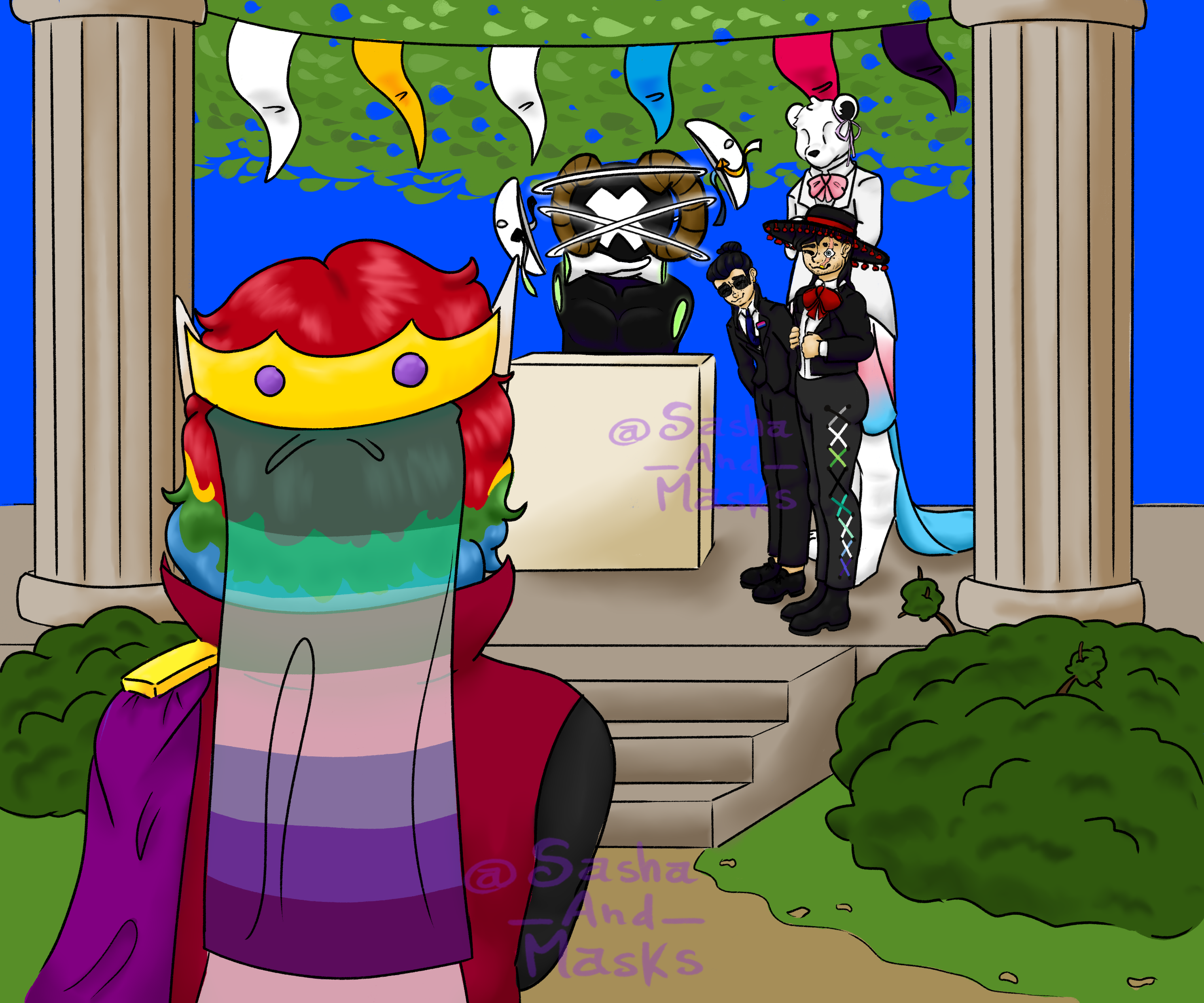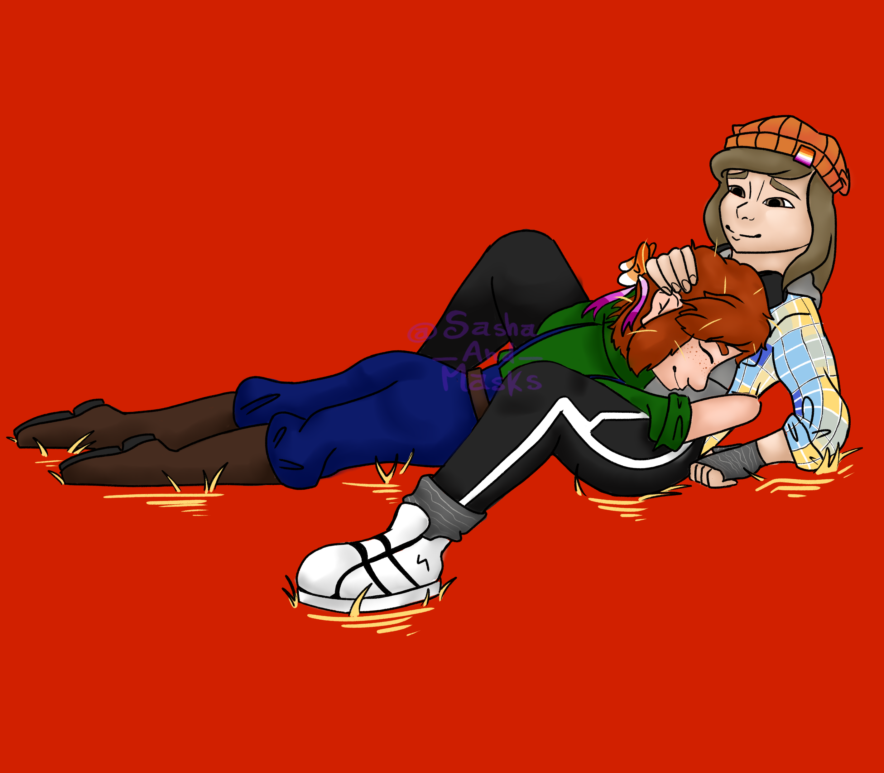 Finally gay and happy Characters: Sasha (mirror pronouns), ElQuackity (he/him), Quackity (he/him), Elena (she/her) Flags: Asexual, Non binary, Gay, Polyamory, Agender, AroAce, Bisexual, Transgender, Aromantic Disclaimer: This art is of our alter Sasha, all characters drawn here are according to his memories of them, no debate/headcanons will be tolerated on this post0 Comments 0 Shares 10 Views