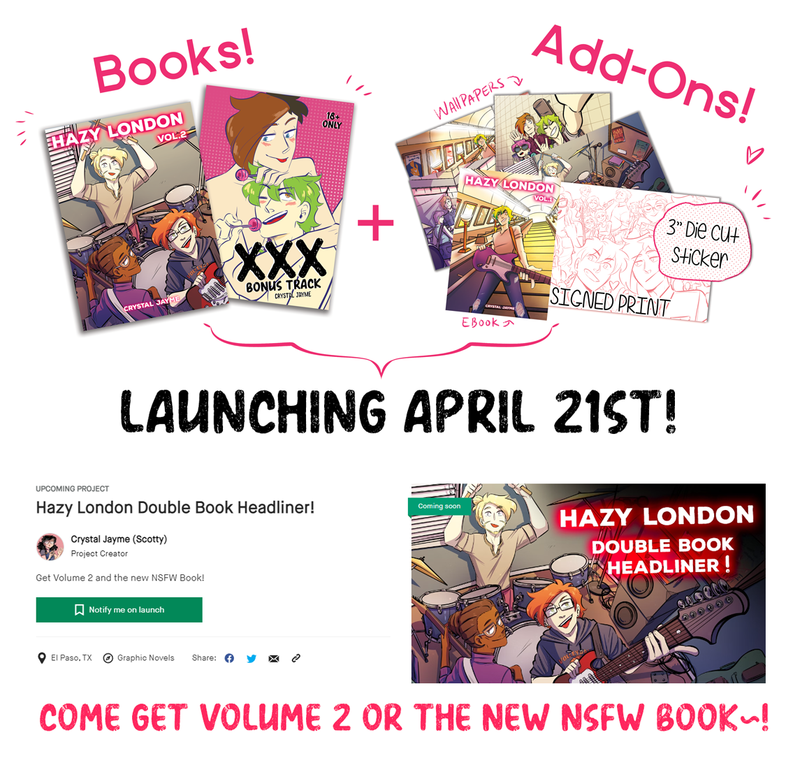 Thanks for your continued support ;w;I'll be launching my first ever Kickstarter to help fund the printing of Hazy London Vol.2 and XXX Bonus Track (the newest NSFW book). All the pre-press is done and the files are ready to send to the printer! Click that link to be notified when it goes live! https://www.kickstarter.com/projects/scottycomics/hazy-london-double-book-headliner?ref=clipboard-pr And click here to read the comic for free~ https://www.hazylondon.com/ Thanks for your continued support ;w;0 Comments 0 Shares 6 Views -
