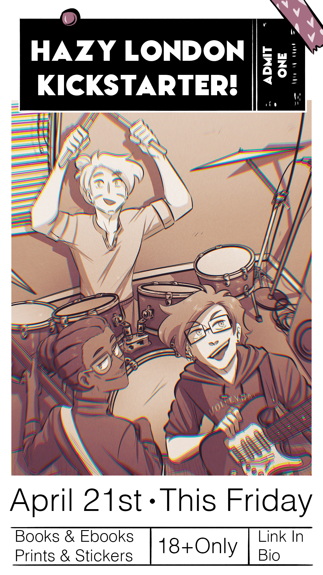 Hazy London is an Lgbtq, Slice of life story about bandmates trying to make their new relationship work! Over 1000+ pages of romance & drama~