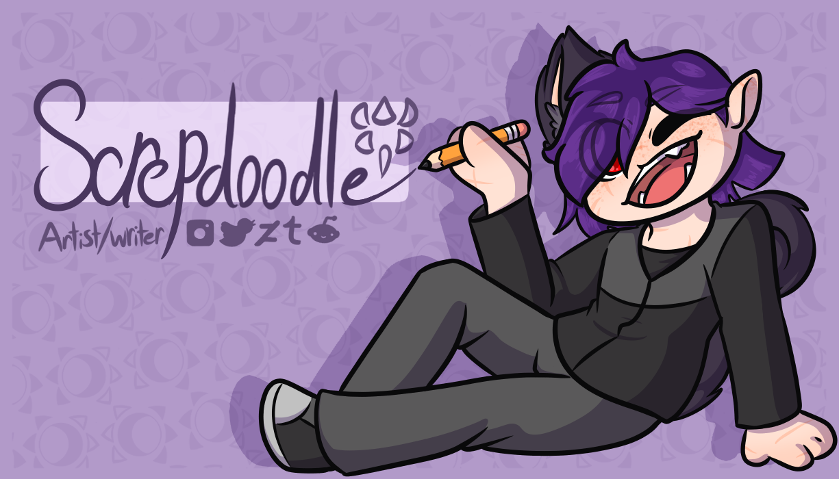 I'm @Screpdoodle on almost every site, ~~though that doesn't necessarily mean I'm active on them XD~~ and I'm hoping to add this one to the roster that I regularly post on! So if you happen to like what you see, please consider dropping a follow :DI'm still getting the hang of this app, so forgive me if I do anything wrong XD Hey there! I'm Scrape, your local eldritch abomination in neko form. I'm an amateur artist and writer with a focus on character driven things, though I am slowly trying to branch out. I'm big into Skylanders, Pokémon, and Minecraft, though I have quite a few other dormant fandoms that might come out from time to time - as well as quite a bit of OC and original story related content! I'm @Screpdoodle on almost every site, ~~though that doesn't necessarily mean I'm active on them XD~~ and I'm hoping to add this one to the roster that I regularly post on! So if you happen to like what you see, please consider dropping a follow :D0 Comments 0 Shares 37 Views -