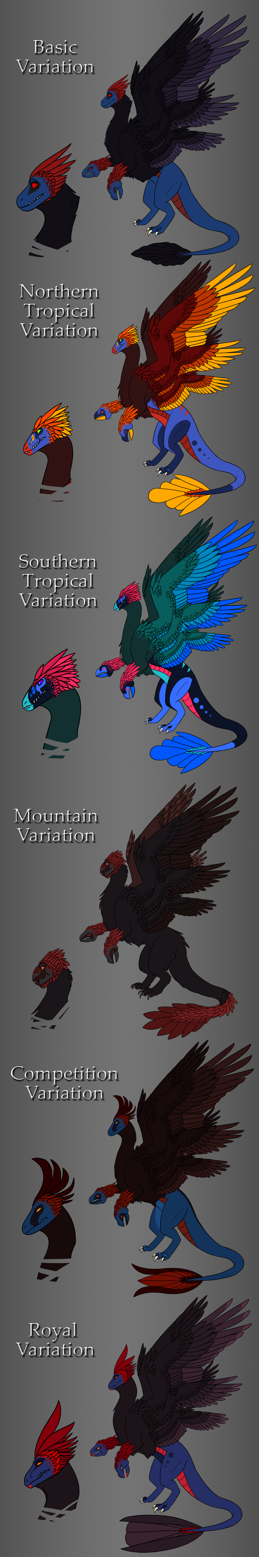 Also, feel free to use these subspecies if you want to. **Just don't forget to credit me, and link back to this page!** I really wanna see what you guys did with them![ORIGINALLY POSTED TO DEVIANTART MAR 21, 2015] **Basic:** Your basic Hydreigon that is found in the wild. They live in the forests and cliffs in the mainlands of the region, making their nests in large trees or small caverns. The thick fur covering their neck, arms, and chest helps keep them warm while they are flying at high altitudes. They often live in a small brood of a few other Hydreigons, Zweilous, and Deino, and are extremely aggressive towards outsiders. They are most well-known for this aggression, and it is because of this behavior that all Hydreigons have been labeled as extremely aggressive creatures. **Northern Tropical:** The most colorful of all Hydreigon subspecies. These Hydreigons live in the northern tropical regions. One of the more notable characteristics about them is that they rely on vegetation and fruit for half of their diet, unlike most other subspecies, which rely on them for around 1/4 of their diet. Long ago, ancient civilizations believed that the Hydreigons of this subspecies had wings made of fire, and worshipped them as gods of light and chaos. Because of this, Pokemon scientists have concluded that this is a subspecies that has been around for thousands of years. They generally make their nests in the canopy of the tropical forest. **Southern Tropical:** A subspecies of Hydreigon that is believed to be considerably younger than the northern subspecies. Because their markings are nearly identical to their cousins living in the northern islands, Pokemon scientists believe that this subspecies evolved even further to match the darker foliage and swamp lands of the southern island regions of the world. Their distinctly blue coloration allows them to blend in with the sky, giving them an advantage when dive-bombing their prey. Their diet consists mostly of fish, other tropical Pokemon (mostly flying types, which they appear to hunt because they are simply more fun to chase,) and some fruit. They tend to create nests near rivers or swamps, in large trees. **Mountain:** This subspecies of Hydreigon is found in the mountain ranges of the regions. Their thick coats help protect them from the cold climates, and their dark coloration allows them to blend in with mountain surfaces. The tops of their wings are a brown color, and they often splay their wings out while they are clinging to a mountainside or cliff in order to blend in better and help them sneak up on prey. Despite their shabby appearance, they are the most graceful fliers of all the Hydreigon subspecies. They learn from a young age how to deal with the wind drag on their fur coats, building strong muscles that can keep them in the air for a very long time. They generally make their nests in a large cave or on the top of a cliff. **Competition:** Their name says all. This subspecies was created through selective breeding in order to produce the most appealing Hydreigon to be presented in Competitions. It is not uncommon to see this subspecies of Hydreigon flanking a celebrity, or on TV in a contest. They are generally more delicate than the other subspecies of Hydreigons, as the selective breeding was focused more on appearance than actual physical strength. They are not to be taken lightly, however, as they weigh just as much as the basic breed of Hydreigon does. They are also much faster than most other subspecies of Hydreigon (save the Southern Tropical), and have a much higher chance of scoring a critical hit against an enemy. This subspecies cannot be found in the wild, however, and must be bred. **Royal:** A rare breed of subspecies. They were originally believed to simply be a variation of the basic breed of Hydreigon, however later studies of this subspecies proved otherwise. They are found in the same general area as the basic breed, however they are more reclusive, and are more active hunters later in the day and early into the night. This subspecies was considered the most favored variation of Hydreigon by the royal family of Unova which resided in the Relic Castle. Unfortunately, due to the rarity of this subspecies, they are in danger of being poached to extinction. Others are captured and sold in the black market. Luckily, measures are being taken to protect this rare subspecies. Recently, a number of regions have begun to send out groups of scientists to track and tag members of this breed so that they may be monitored. And during breeding season in Unova, trained Herdiers are set into the forest to help combat and drive away any poachers that may enter the territory. Man it took me forever to come up with stuff for each subspecies. I hope you like them! Also, feel free to use these subspecies if you want to. **Just don't forget to credit me, and link back to this page!** I really wanna see what you guys did with them!0 Comments 0 Shares 7 Views -