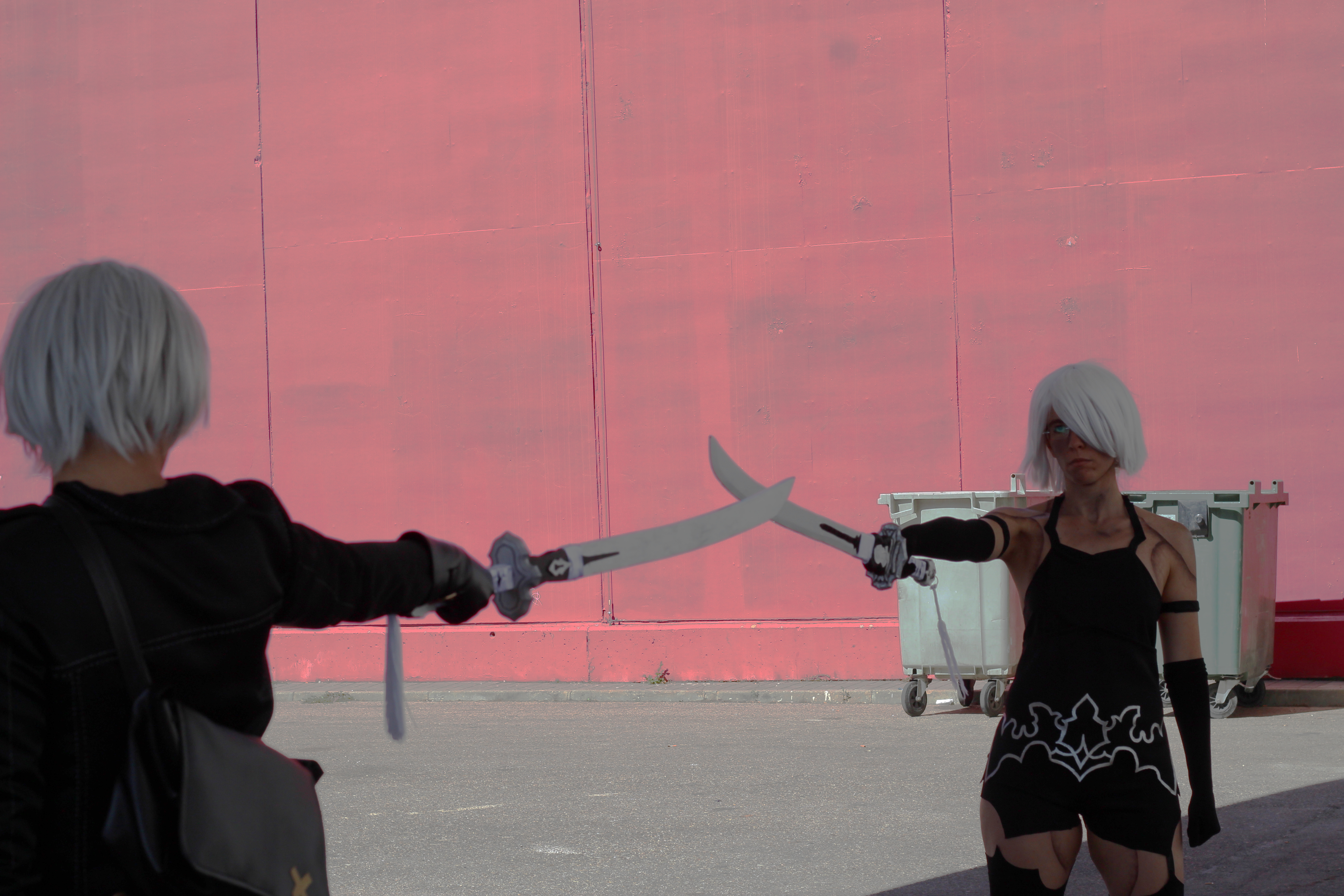 Japan Weekend 2018, Madrid. 2B: SoraNami on dA and Twitter. 9S: WIP_J on Twitter. A2: me. Photographer: SheeKNS on dA and Twitter. Edition: me. Still learning about this part, but believe me, you couldn't see shit in the original photo xDDDDDD