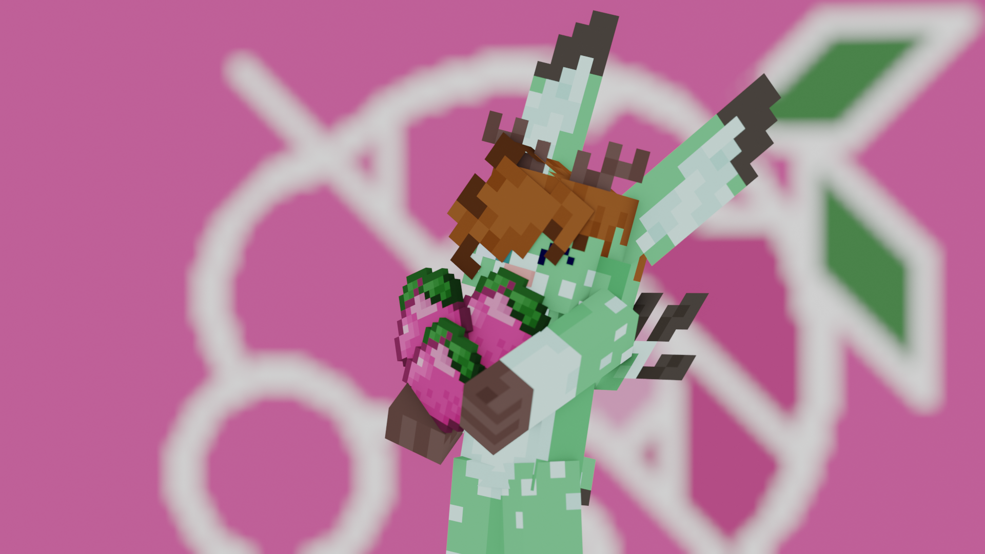 I'm really happy with his head tbh - like i said earlier, I know an official model wouldn't look like this, and would probably separate the eyes more or something to really "other" him, but he's cute like this and that's what matters to me ! also the way his head looks is pretty much based off the model in my head of him; if you ever see how I draw his head, you'll see how i draw his mouth area - i think of it kinda like a screwed up snout... which if you think abt it is _kinda_ what it is... Anyways yeah monsters vs minecraft c: less of a thought experiment of the monsters playing minecraft and more "oh god I'm in The Game Now, what is a creeper" exploration. also the hugh laurie soundfont in my head said "Mine Cr(o)ft" in the doc voice and that gives me dopamine.