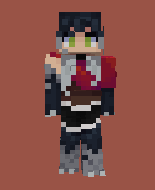 At some point I'll probably pull out some proper reference images to get his colors a little more accurate, but I think this looks pretty good for what's basically a minecraft skin. I made his body a few pixels slimmer, so he's got a bit of an Alex model going on with his arms and legs. Otherwise, his body height is the same as normal player models, ergo it's once again his head making him taller. The antennae were both the fun part and the worst part to make - it kinda just perfectly fell into place, but Oh My God The UVs. this was my first time doing a blockbench model, and I kinda just laid the uv wherever it would fit instead of laying everything out ahead of time and instead of using a transparent UV (very bad!! especially when he has a lot of pure white in his design OTL)