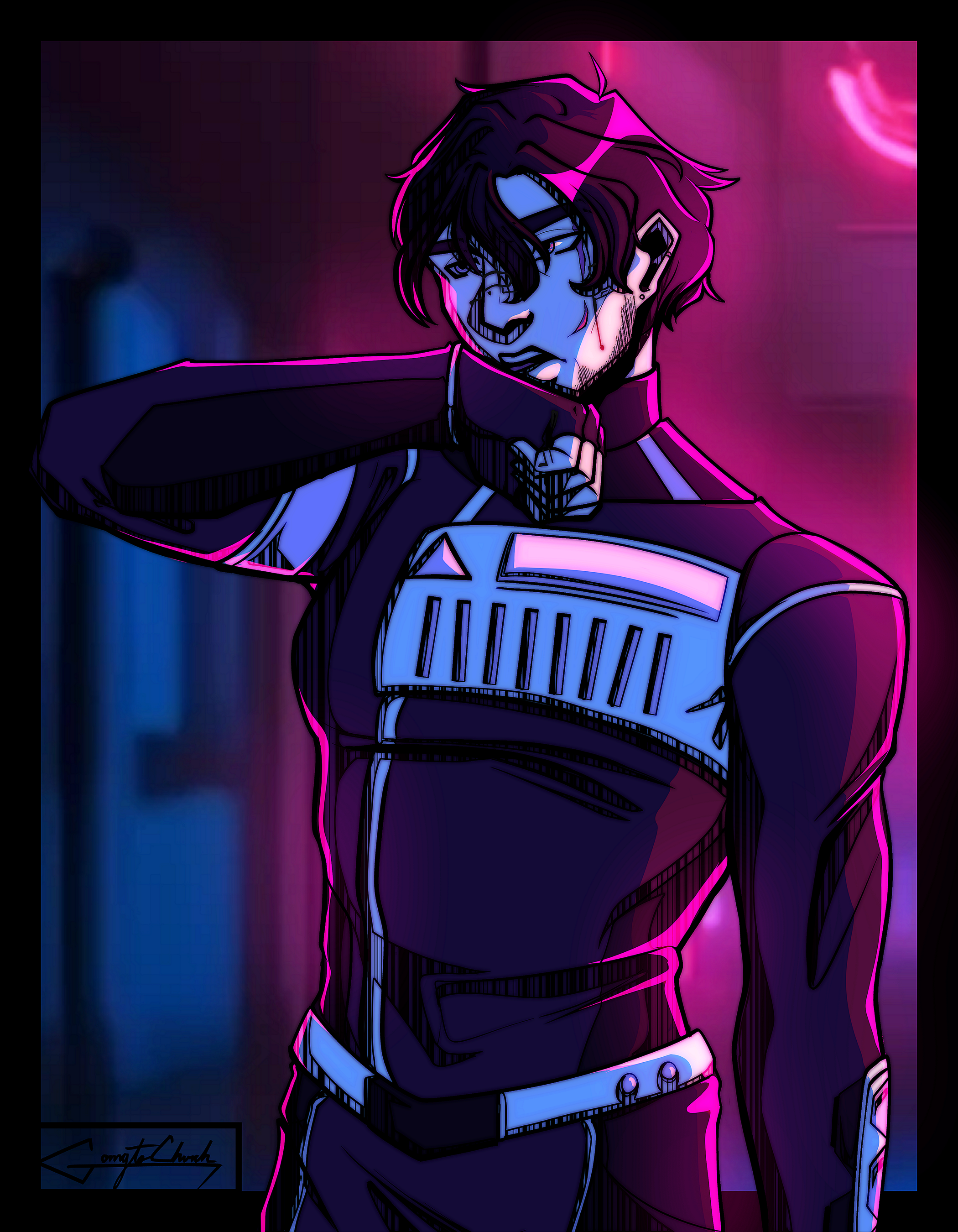 OC | Rusya New concept art baby~ This ones one of my side characters for my world. His name is Ruslan Borisvich but goes by Rusya. Kinda hacker kinda not. Anyway, I do love me some pink and blue lighting~