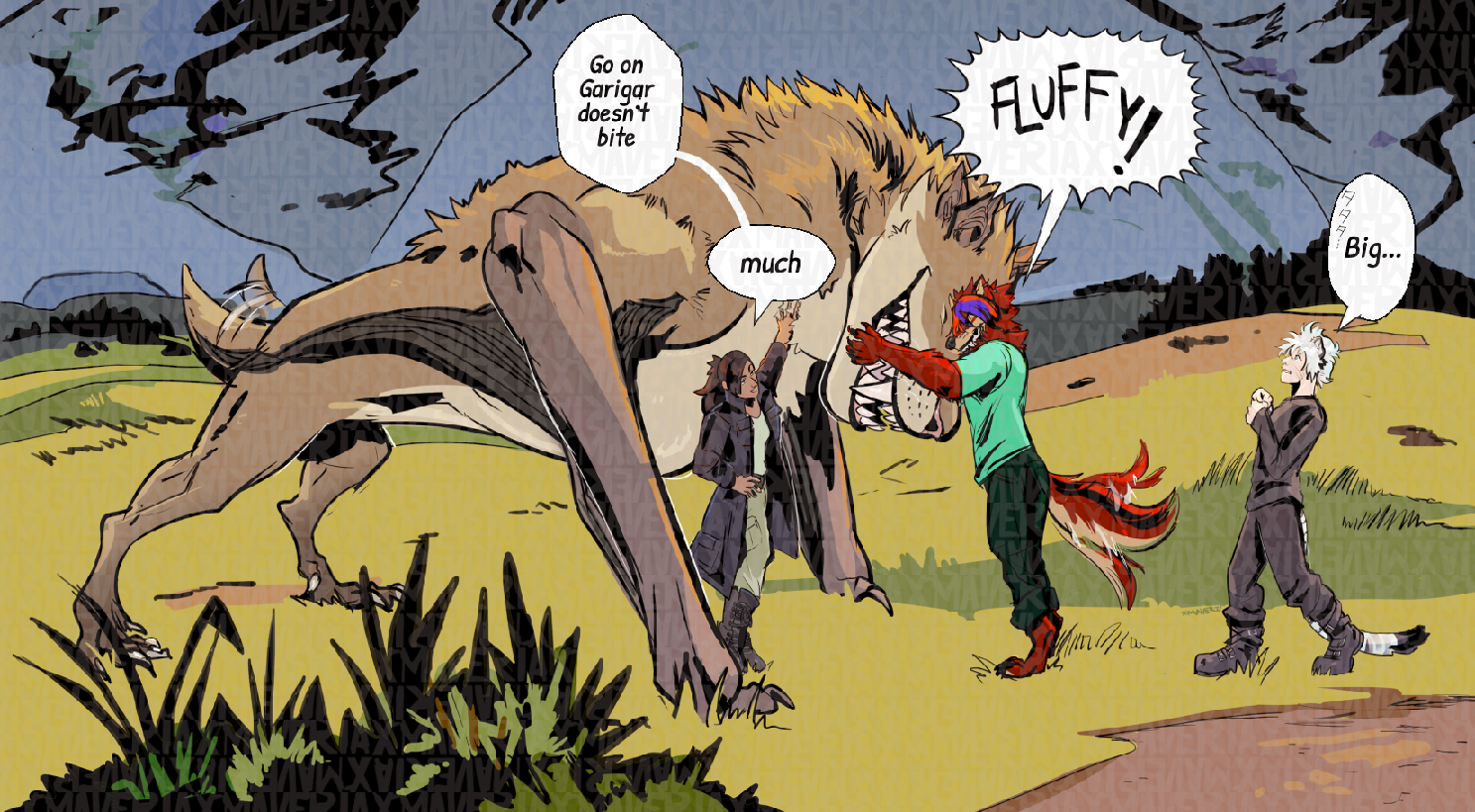 • A commission for @CreatingWithInk on twitter! He gave me the prompt of drawing a couple of his and friend oc along with mine in a crossover. Which I thought it was an amazing idea I love crossovers like these. The beastie and the human are my ocs Garigar and Valerie along with Hane and Hakumei being his and friend's oc