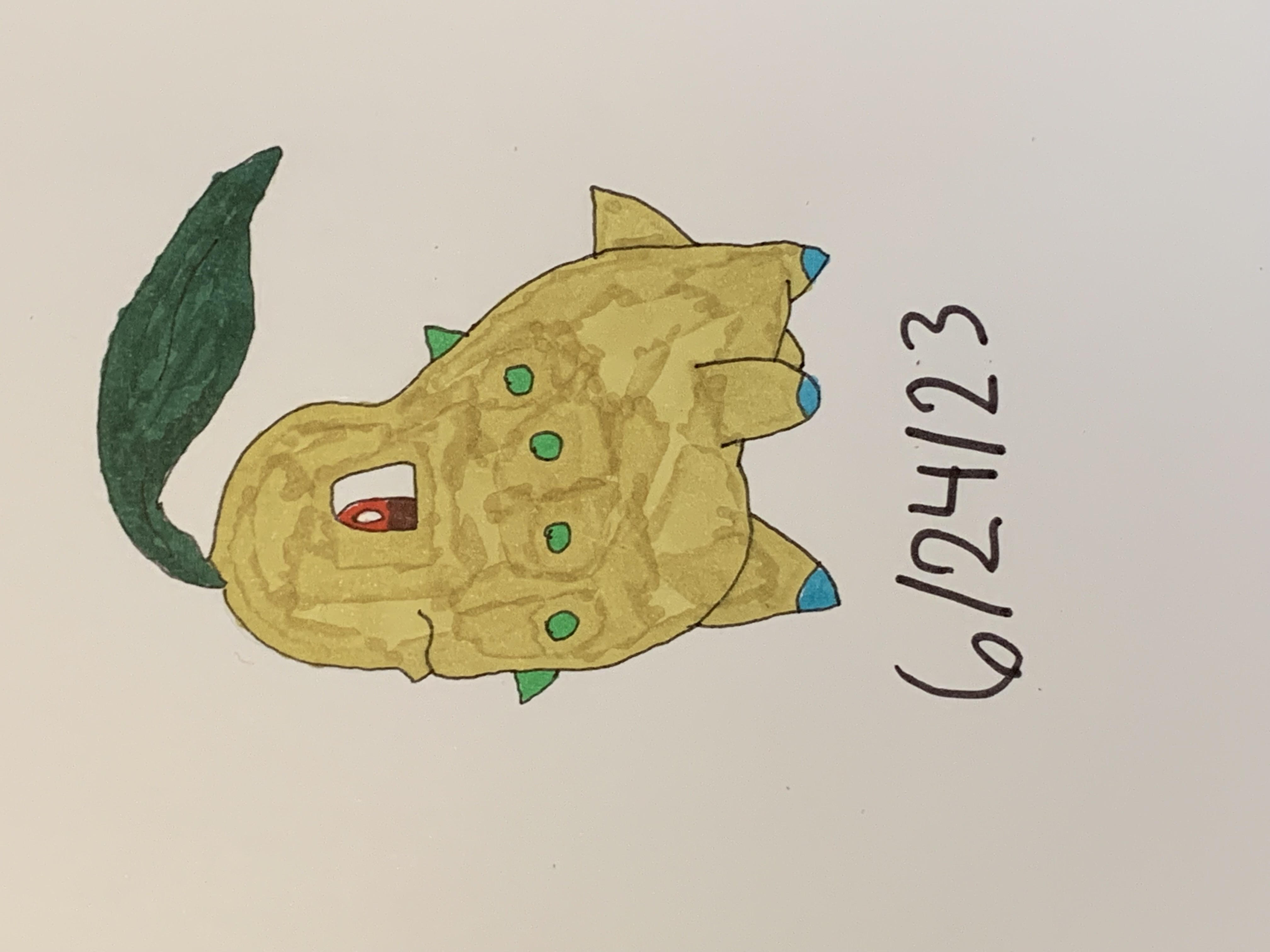 The colors are way off, but I tried drawing Chikorita 🙂