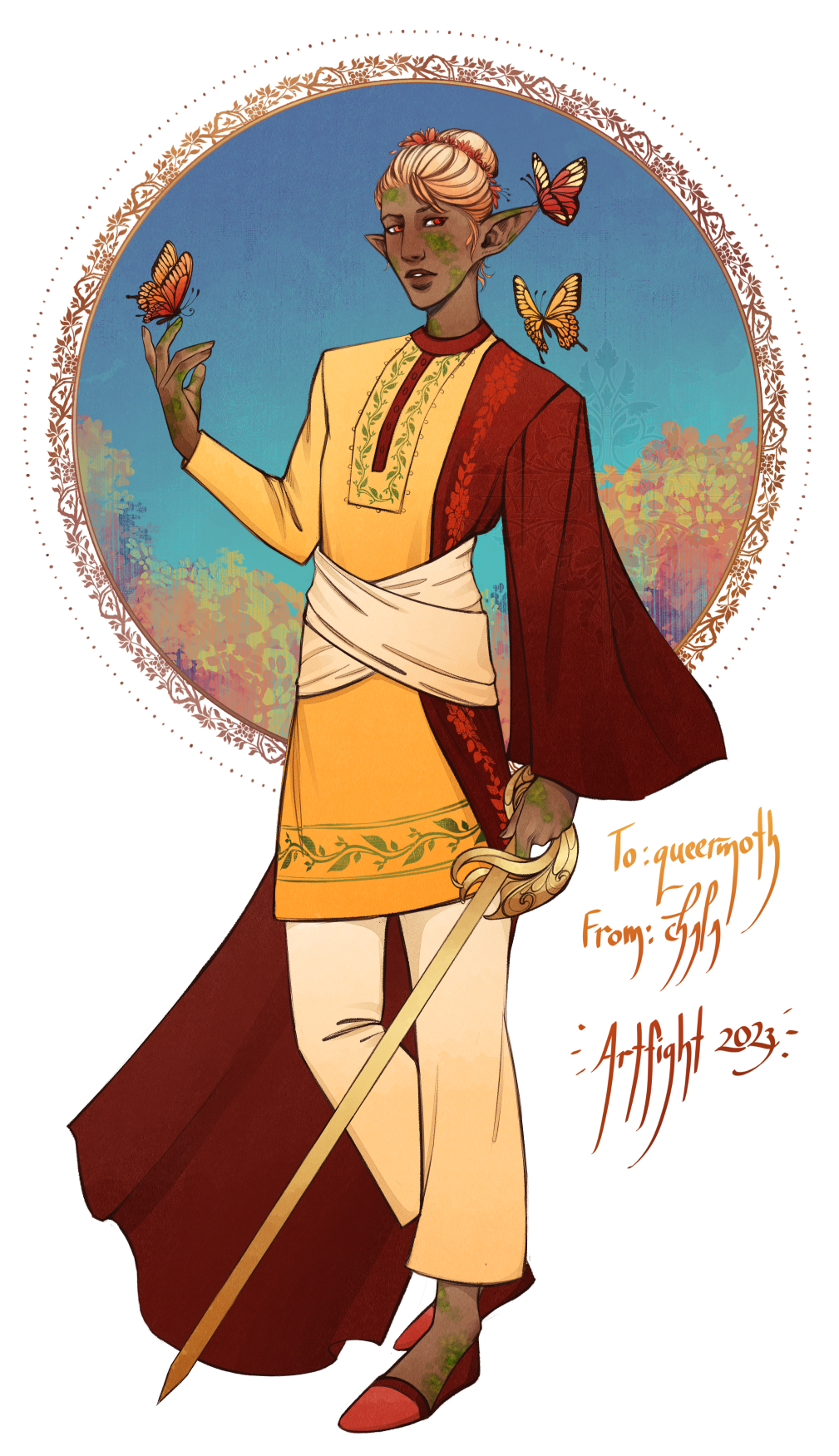 ~~swords out forever~~ Artfight attack #8! For [queermoth](https://artfight.net/~queermoth) on AF, their summer eladrin.