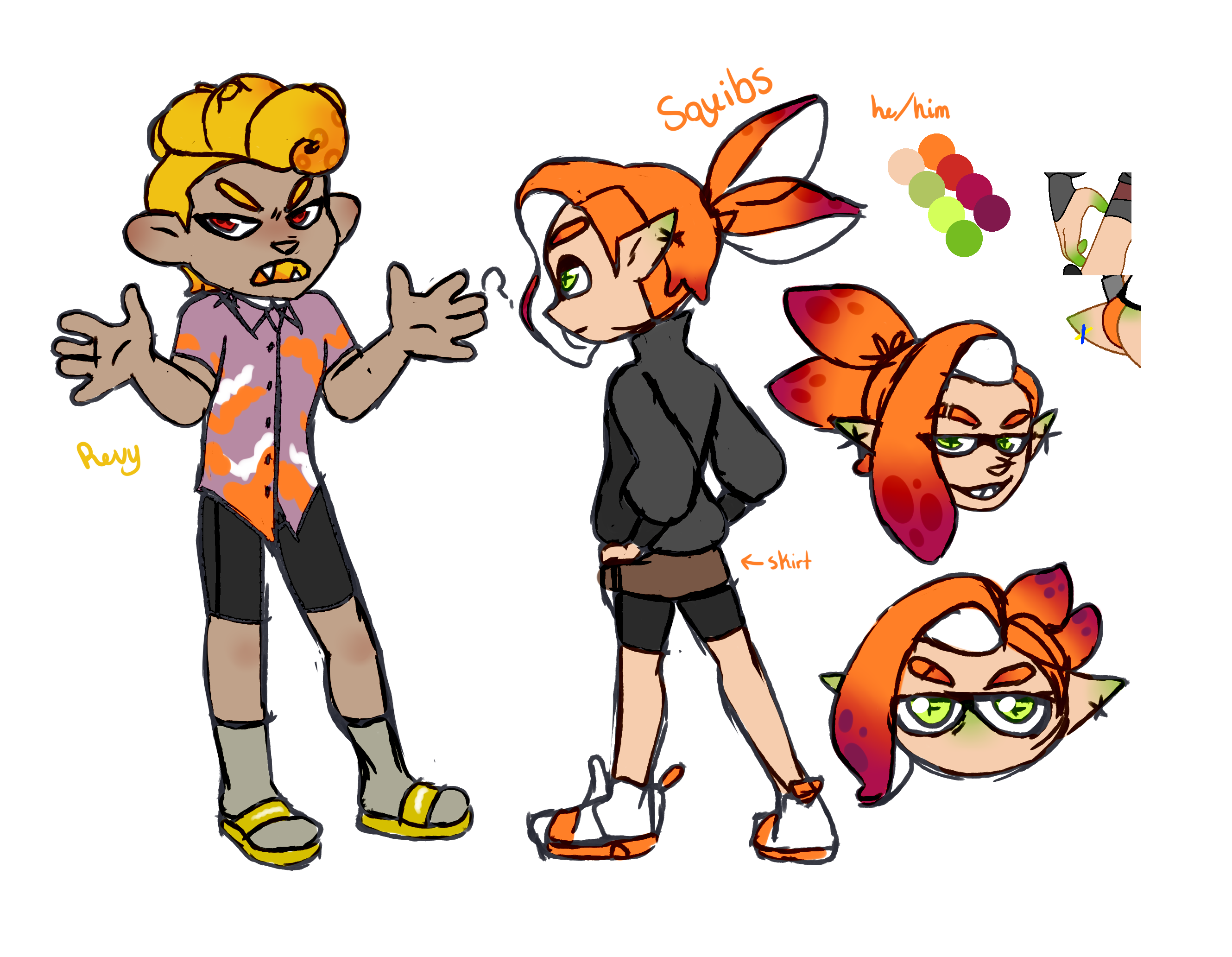 Squibs and my friends octo Squibs(full name Squibbles) He/Him inkling 19 N-Zap '85 user kinda short Frye fan