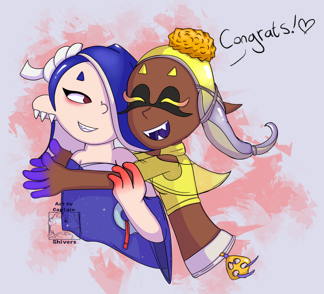 (Drawn in August 2022) Oops I ship it :3c Frye congratulates Shiver on winning the first Splatfest -w-