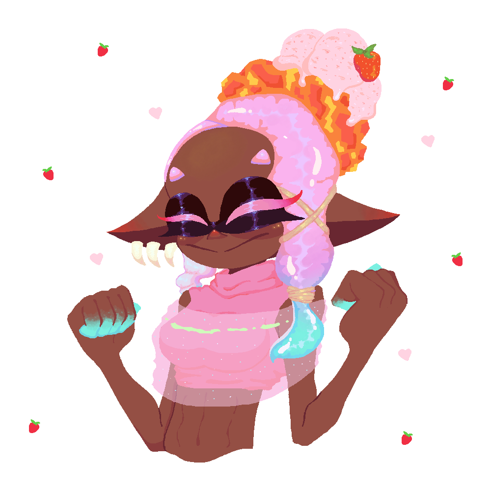 • The icon I made for my Splatoon Twitter [BadAtSplatoon2](https://twitter.com/BadAtSplatoon2)! It's of my squid in the hat I always wear (because it's the only one with good abilities LMAO) and the Sweet Splatfest shirt since the Splatfest just happaned. Frye deserved that win btw