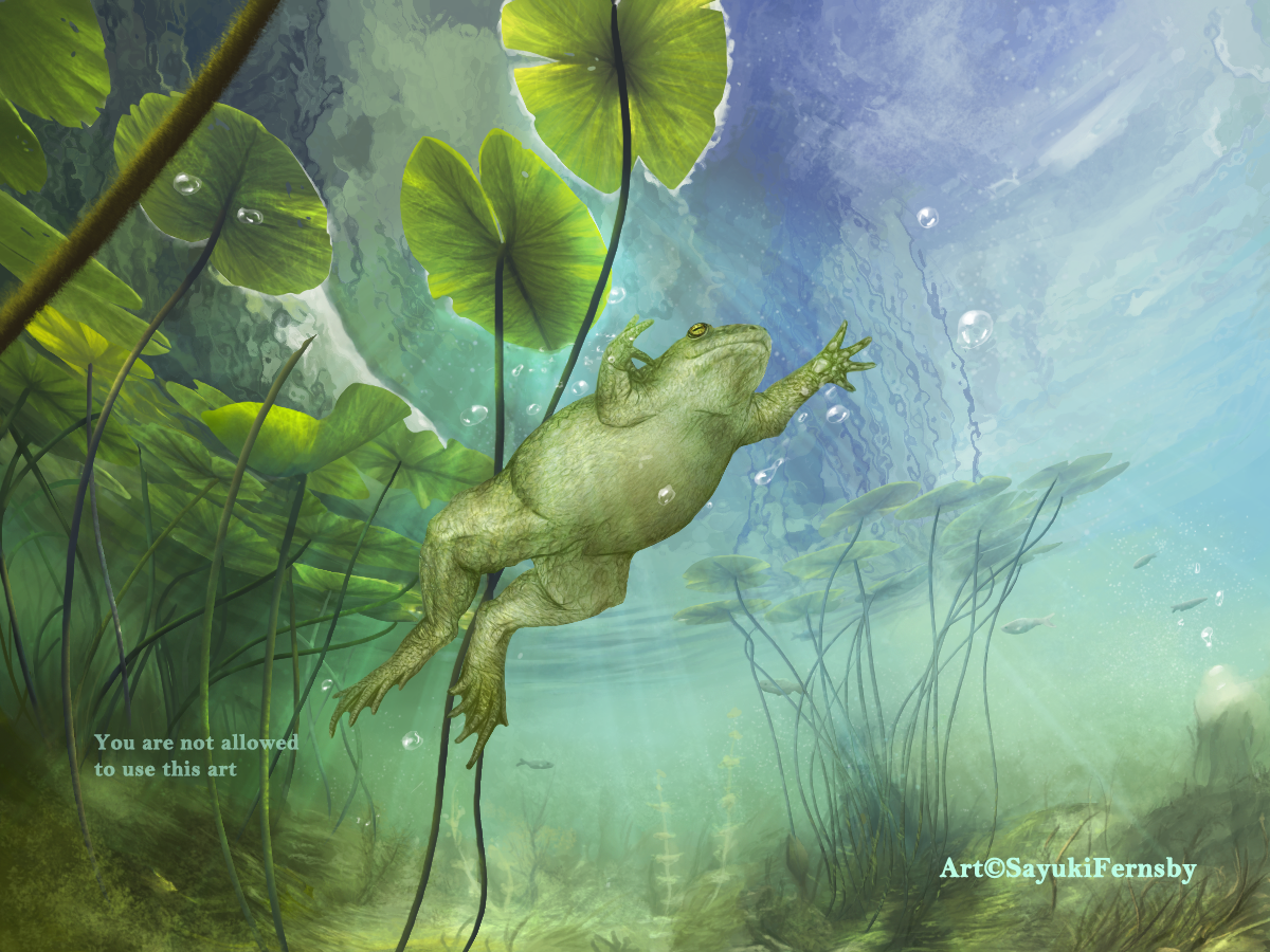 A fully-rendered tribute to a little taod from march 2019 --- Back in 2019 I lived in one of germany's biggest cities and in my local area were some wild animals as well. During march a lot of frogs and toads started to migrate to their spawning waters to find a mate and lay their spawn. You have to know that I I have a weak spot for those animals. I think they are adorable and cute and in my opinion it's sad that a lot of people don't care about them. That particular Monday I came back from the cinema (it was already after 11PM) and noticed that one little toad was lying on the street. It was hit by a car and its guts were clearly visible... Yes, that may sound strange, but I think it's really sad, when a living being gets killed and its remainings are treated like junk, therefore I decided to wrap the corpse in a big leaf and bring it to the roadside, so that it won't be damaged any further. In the moment I lifted the animal, it started to move. It was still alive, although it was terrible hurt and weakly tried to push me away with his little feet. I was shocked and my eyes immediately started to fill with tears, when I realized what I had to do... I couldn't leave it like this.... The poor toad was lethal hurt and surely suffered a lot, because of its terrible wounds.... I understand that I had to deliver it from its pain, but...damn...I felt so terrible after it was done... At that night time I had problems to fall asleep, since I started so cry again and again and I wasn't able to sleep through the night as well. I felt so bad, although I did what was best for the wounded animal, but still... You can call me childish if you want, but it helped me to draw this picture in tribute to the toad and imagine that it's soul is at a better place now. --- You are not allowed to use/steal/copy this picture or use it to train AI. Thank you. Artwork ©SayukiFernsby