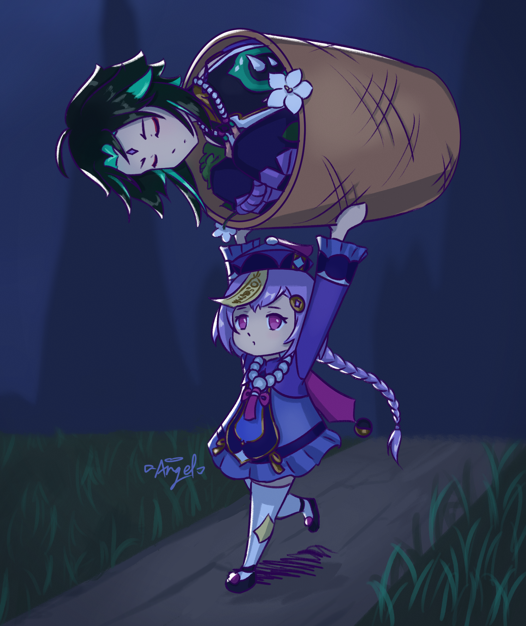my contribution to the collection of images of qiqi carrying xiao (xiao/lantern rite 2023 PV)