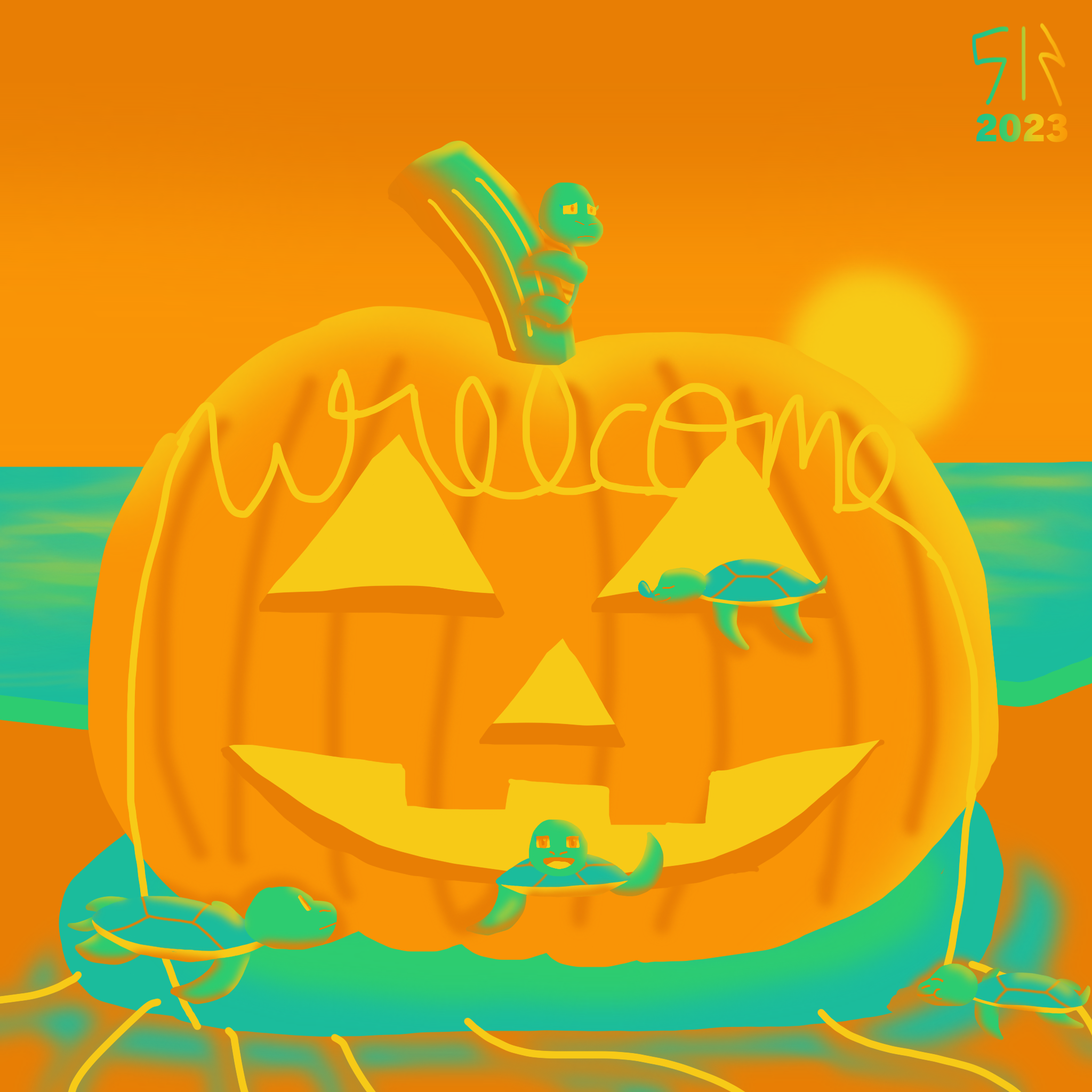 I decided to do a color palette art challenge and this was my result for the latest one posted. The palette and the user can be found here: https://x.com/colorschemer/status/1699769487963111768?s=46 I wanted to draw sea turtles in a jack-o-lantern because it is near the end of summer. I tried not to add extra colors to avoid cheating.