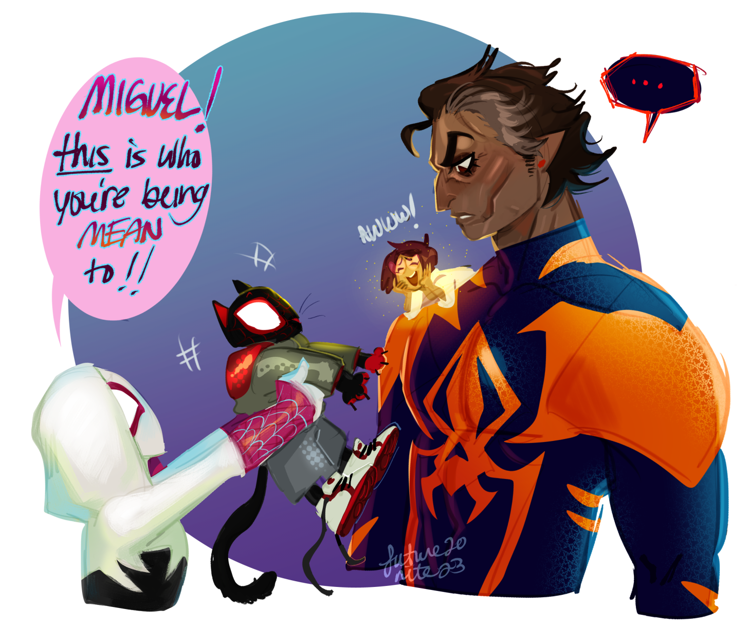• you know those 'see this creature? [cute or scringly little thing] this is who youre being mean to." memes. that but w meows morales.